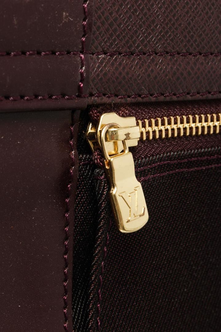 One Louis Vuitton Brown Leather Portable Garment Briefcase. Item is sold AS-IS. All available information is listed in the description and shown in the photo. Louis Vuitton Brown Leather Portable Garment Briefcase with top handle, detachable strap, top flap is leather, bottom half is canvas, two interior zip pockets, comes with a hanger, gold tone hardware, buckle and zip closure.