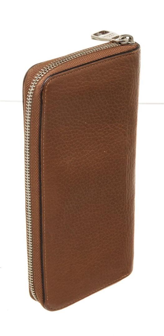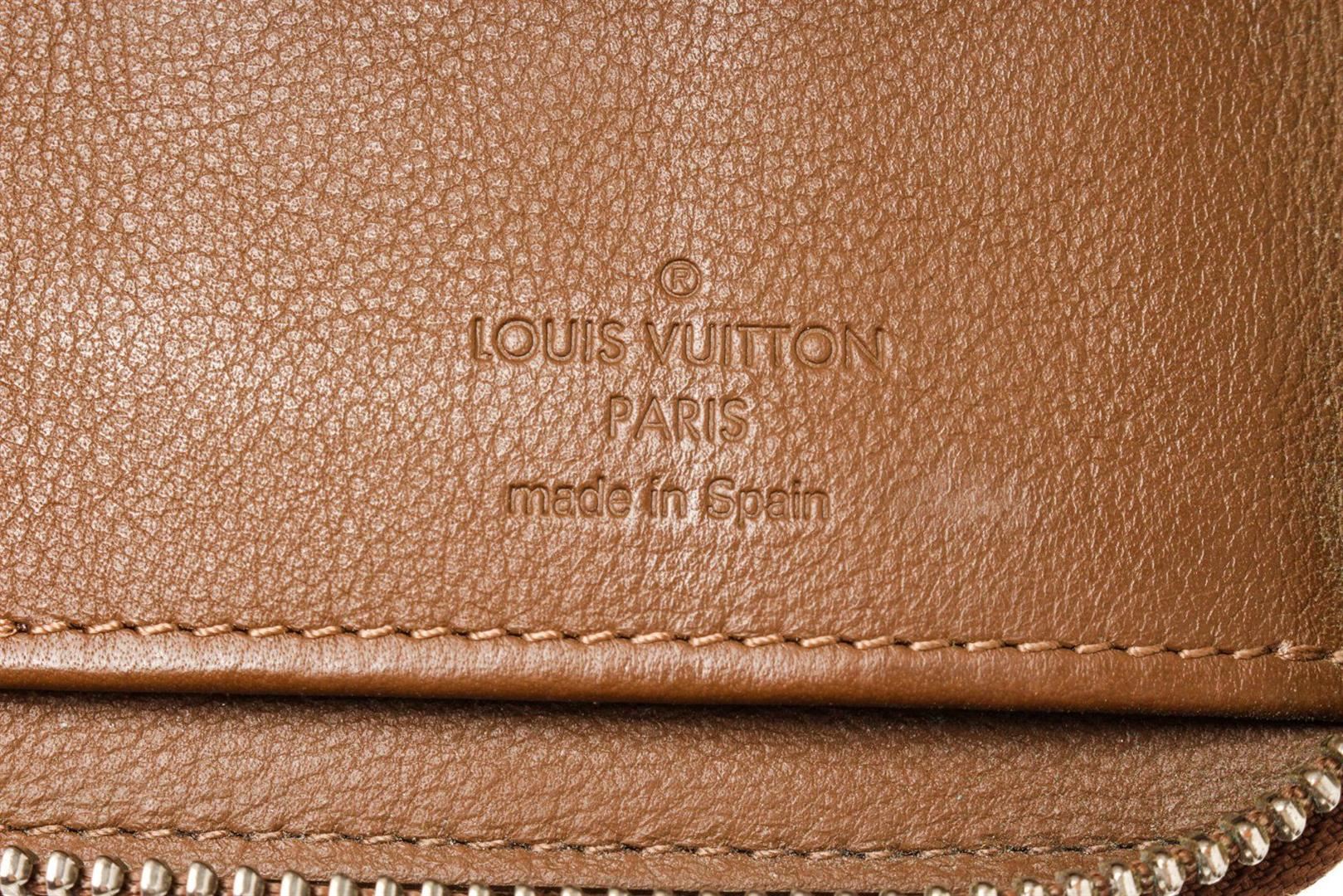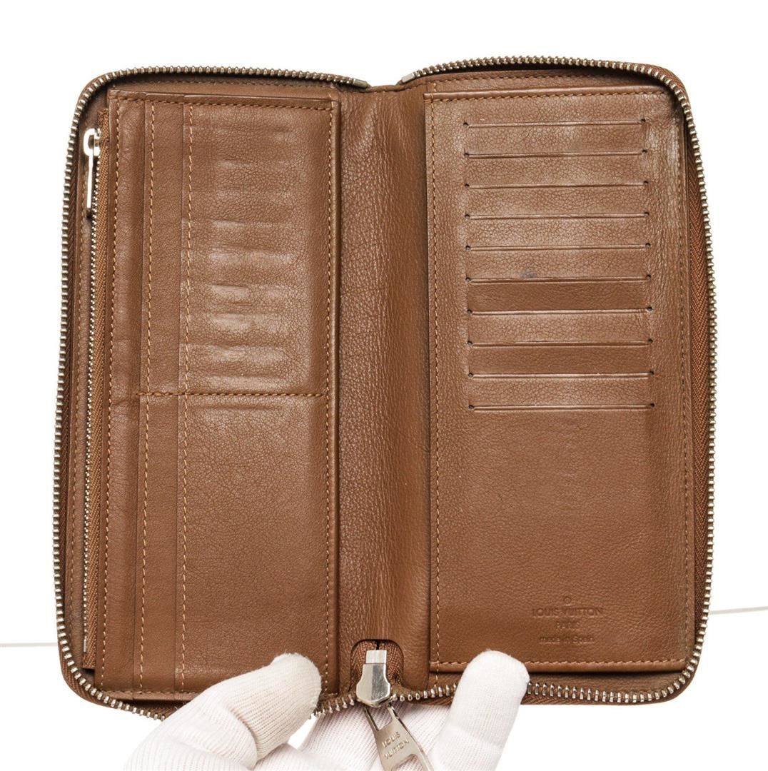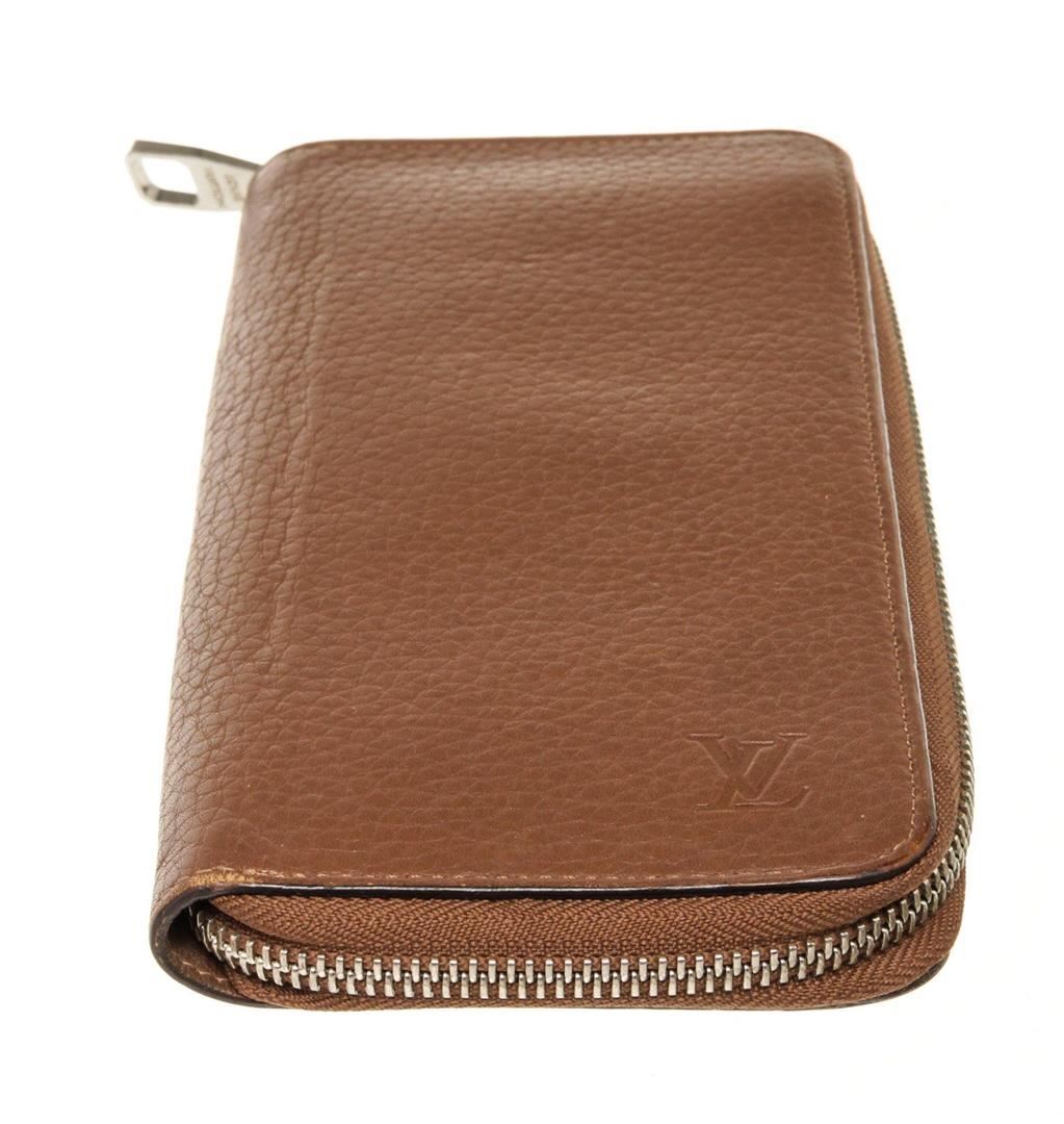 Louis Vuitton Brown Leather Vertical Zippy Wallet with leather, gold-tone hardware, trim tan vachetta leather, interior card holder pockets and zipper closure.