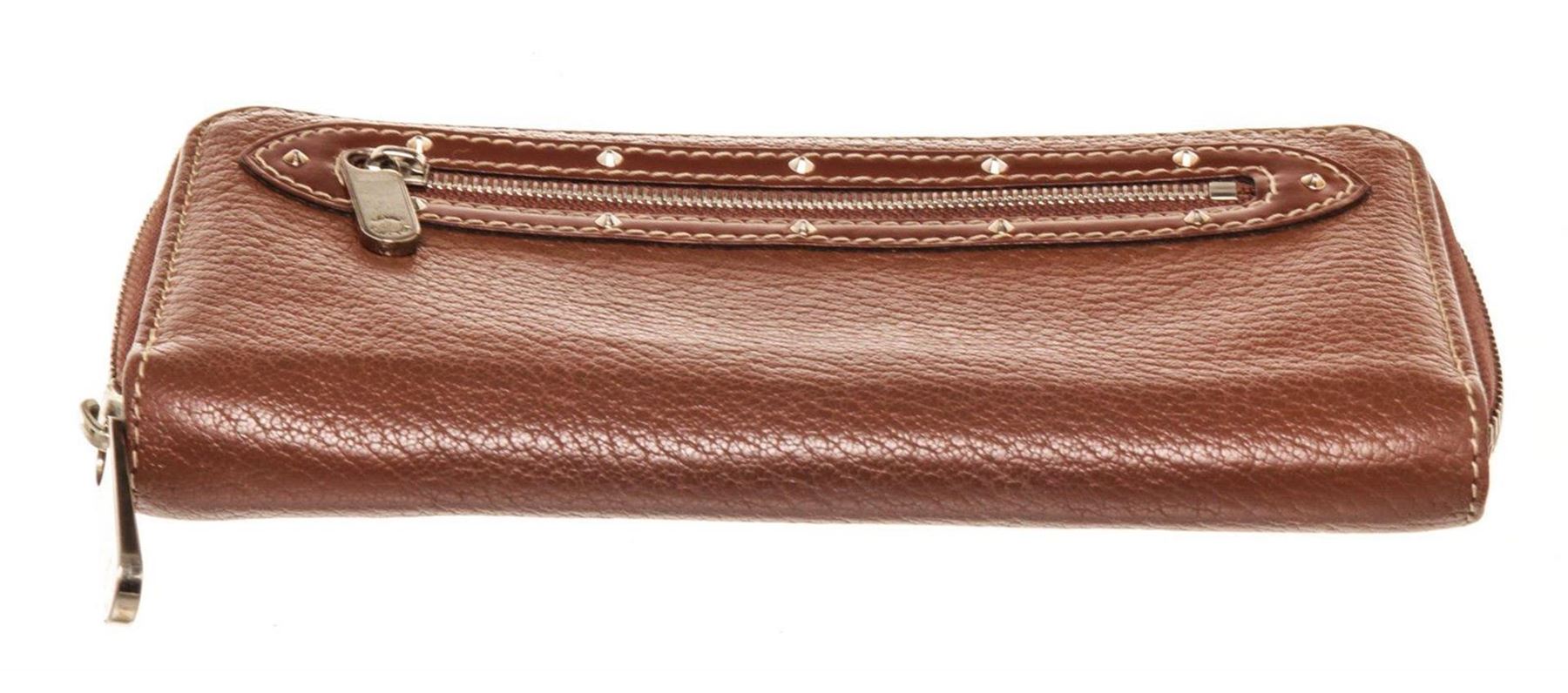Louis Vuitton Brown Leather Zippy Wallet with leather, gold-tone hardware, exterior zip pockets, interior three compartments pockets and zipper closure.