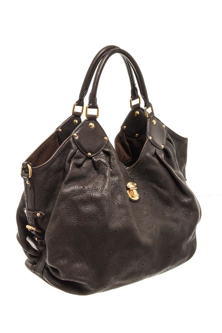 Louis Vuitton Brown Mahina Leather Hobo Bag. All available information is listed in the description and shown in the photos. louis vuitton brown mahina leather hobo bag with brass hardware dual shoulder straps lasercut accents alcantara lining & single interior pocket push-lock closure at front protective feet at base. Height: 11.5" Width: 15.25" Depth: 6.5", Handle Drop: 7" / 29.21 x 38.73 x 16.51 Cm