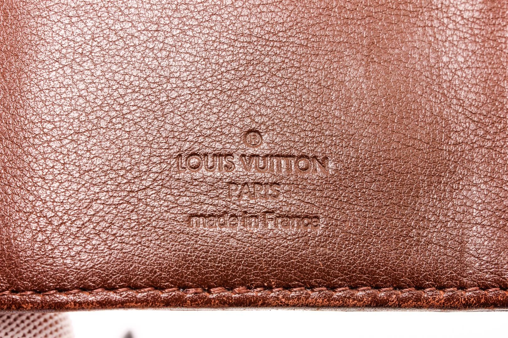 Brown Monogram Mahina leather Louis Vuitton Amelia wallet with brass hardware, tonal leather interior, dual compartments; one with zip closure, three bill compartments, nineteen card slots and push-lock closure at front flap.