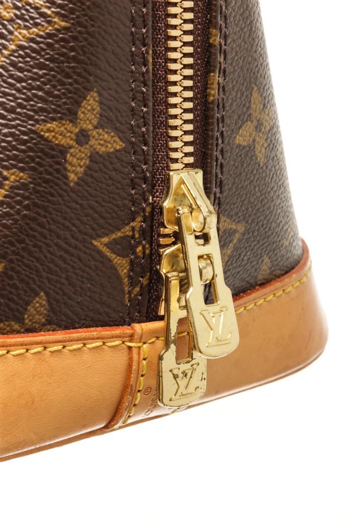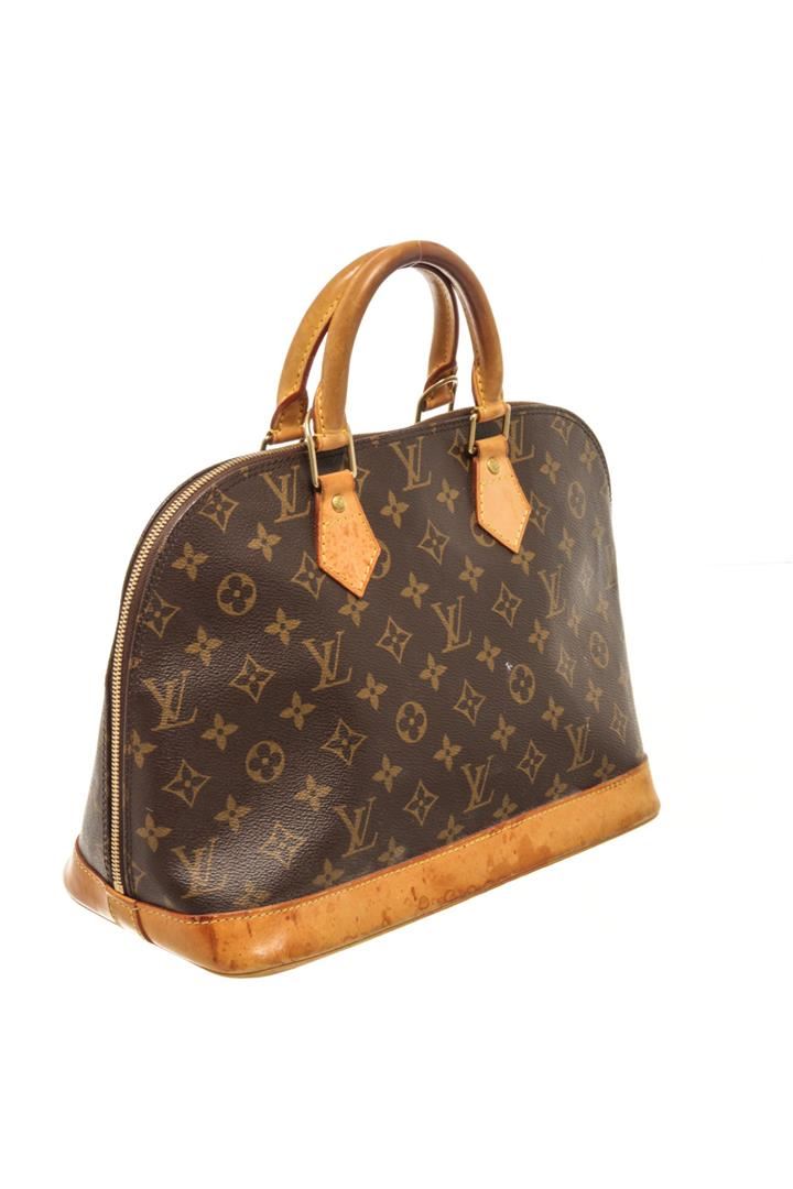 One Louis Vuitton Brown Monogram Alma Bag. Item is sold AS-IS. All available information is listed in the description and shown in the photo. Louis Vuitton Brown Monogram Alma PM Bag with top handle, canvas lining, interior slip pockets, gold tone hardware, zipper closure. There is heavy wear on the bottom of the bag. Please refer to photos. Height: 9.1" Width: 13.4" Depth: 6.1" , Handle Drop: / 23.11 x 34.03 x 15.49 Cm