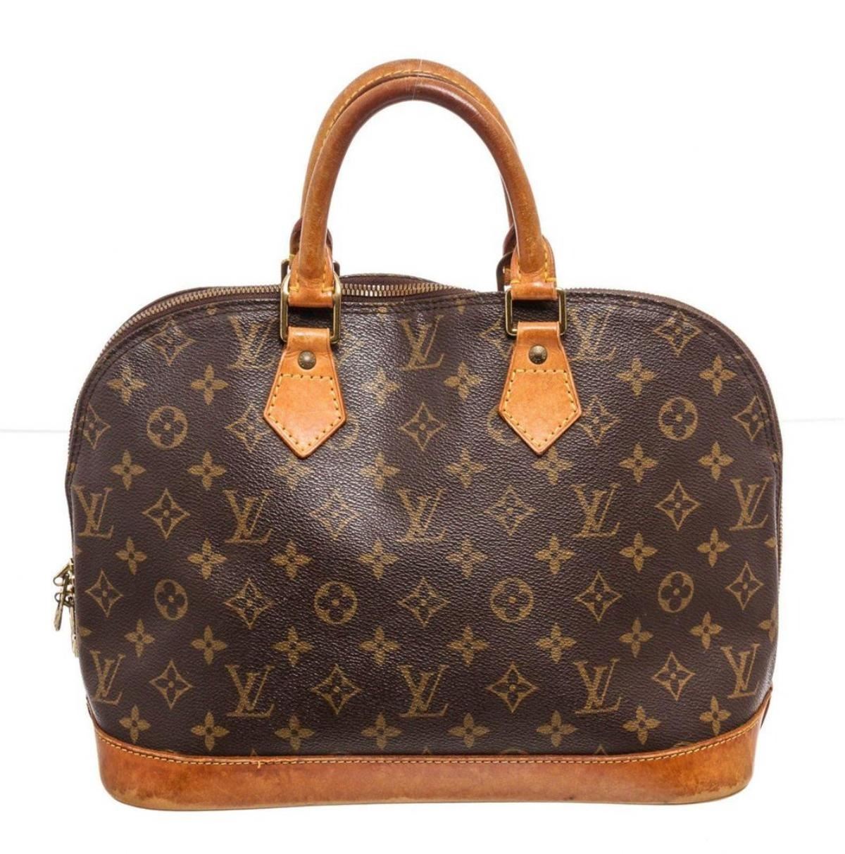 Louis Vuitton Brown Monogram Alma MM Satchel Bag with gold-tone hardware, tan vachetta leather trim, interior zip pockets, canvas lining, dual flat shoulder straps, and zip closure. Measurements: Length: 5 in / 13 cm Width: 9.5 in / 24 cm 12 in / 30 cmCONDITION: Pre-Owned Good overall, please see photographs for detail.