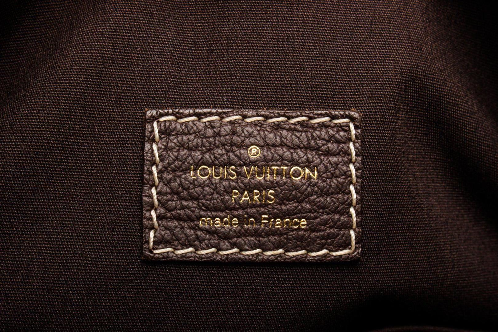 Louis Vuitton Brown Monogram Angele Totes Bag with monogram canvas, gold-tone hardware, trim tan vachetta leather, interior slip pocket, dual top handle and zipper closure.