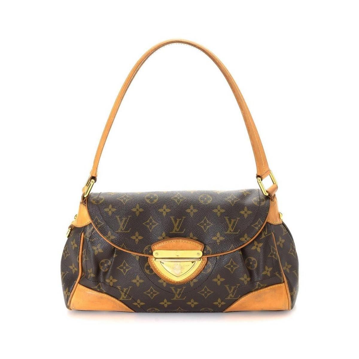 Louis Vuitton Brown Monogram Beverly MM Shoulder Bag with gold-tone hardware, monogram material, tan vachetta leather trim, top handle, leather shoulder strap, and zipper closure. CONDITION: Pre-Owned Good overall, please see photographs for detail.