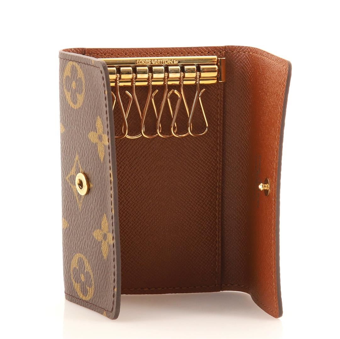 This compact case holds six keys on individual golden brass hooks. In Brown Monogram coated canvas, grained calf leather lining, snapped closure, it is a practical accessory for a handbag or briefcase. 6 Height 2.5", Width 4", Depth 1"