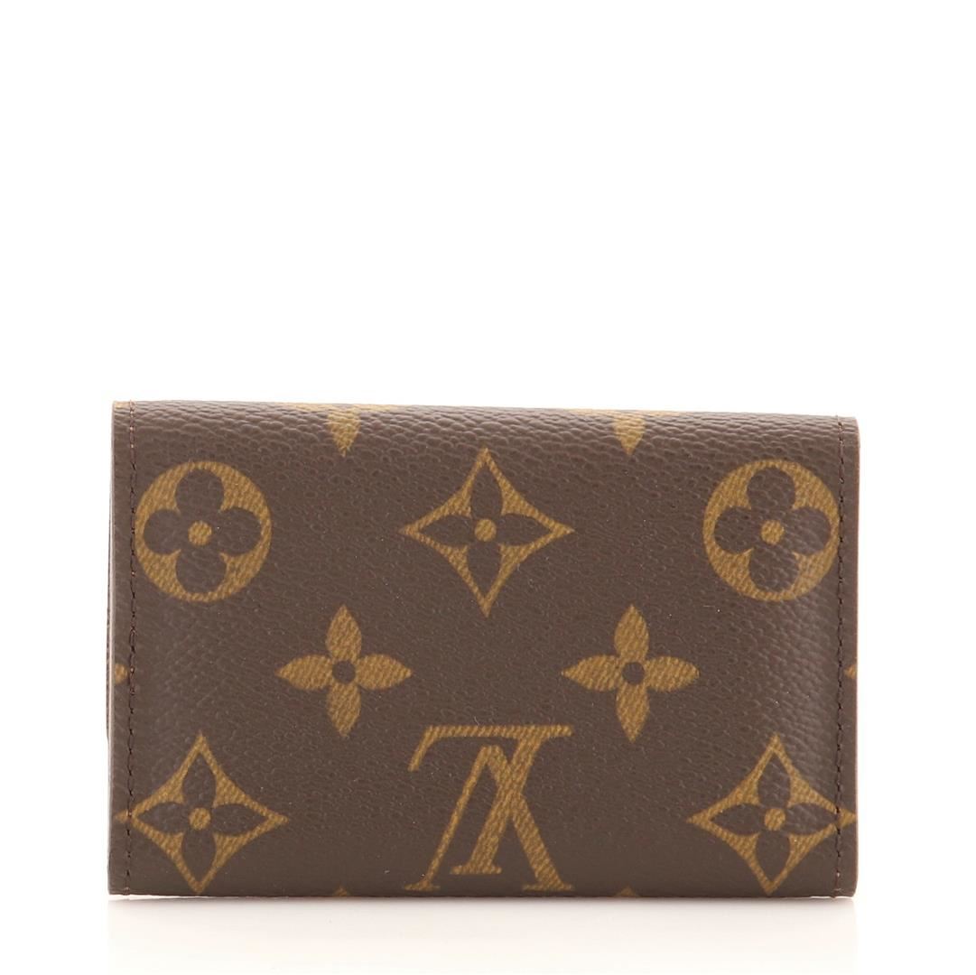 One Louis Vuitton Brown Monogram Canvas 6 Key Holder. Item is sold AS-IS. All available information is listed in the description and shown in the photo. This compact case holds six keys on individual golden brass hooks. In Brown Monogram coated canvas, grained calf leather lining, snapped closure, it is a practical accessory for a handbag or briefcase. Height 2.5", Width 4", Depth 1"