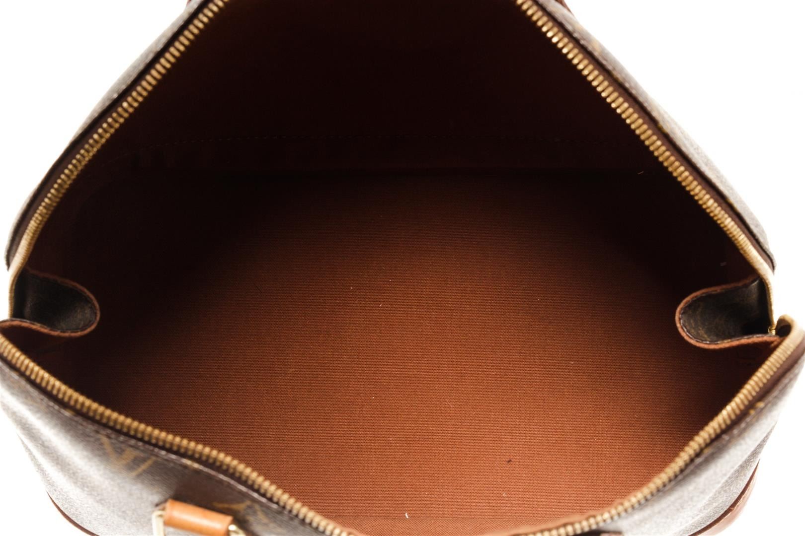 One Louis Vuitton Brown Monogram Canvas Alma GM Satchel Bag. Item is sold AS-IS. All available information is listed in the description and shown in the photo. louis vuitton brown monogram canvas alma gm satchel bag with the alma pm a monogram canvas body, rolled leather handles, a leather bottom, a top zip closure, and an interior slip pocket. Depth 6.7 in, Handle 3.1 in, Height 9.4 in, Width 12.2 in / Depth 17 cm, Handle 8 cm, Height 24 cm, Width 31 cm