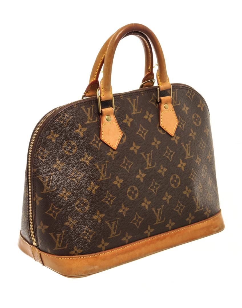 One Louis Vuitton Brown Monogram Canvas Alma Handbag. Item is sold AS-IS. All available information is listed in the description and shown in the photo. Louis Vuitton Brown Monogram Canvas Alma PM Handbag with the alma pm features a monogram canvas body, rolled leather handles, a leather bottom, a top zip closure, and an interior slip pocket. W: 12.20" x H: 9.44" x D: 6.69" / W31cm x H24cm x D17cm