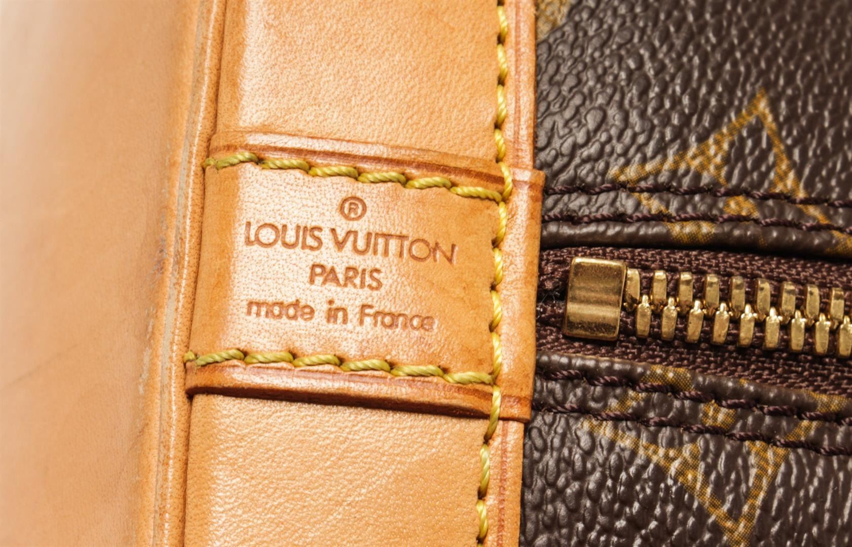 One Louis Vuitton Brown Monogram Canvas Alma Handbag. Item is sold AS-IS. All available information is listed in the description and shown in the photo. Louis Vuitton Brown Monogram Canvas Alma PM Handbag with the alma pm features a monogram canvas body, rolled leather handles, a leather bottom, a top zip closure, and an interior slip pocket. W: 12.20" x H: 9.44" x D: 6.69" / W31cm x H24cm x D17cm