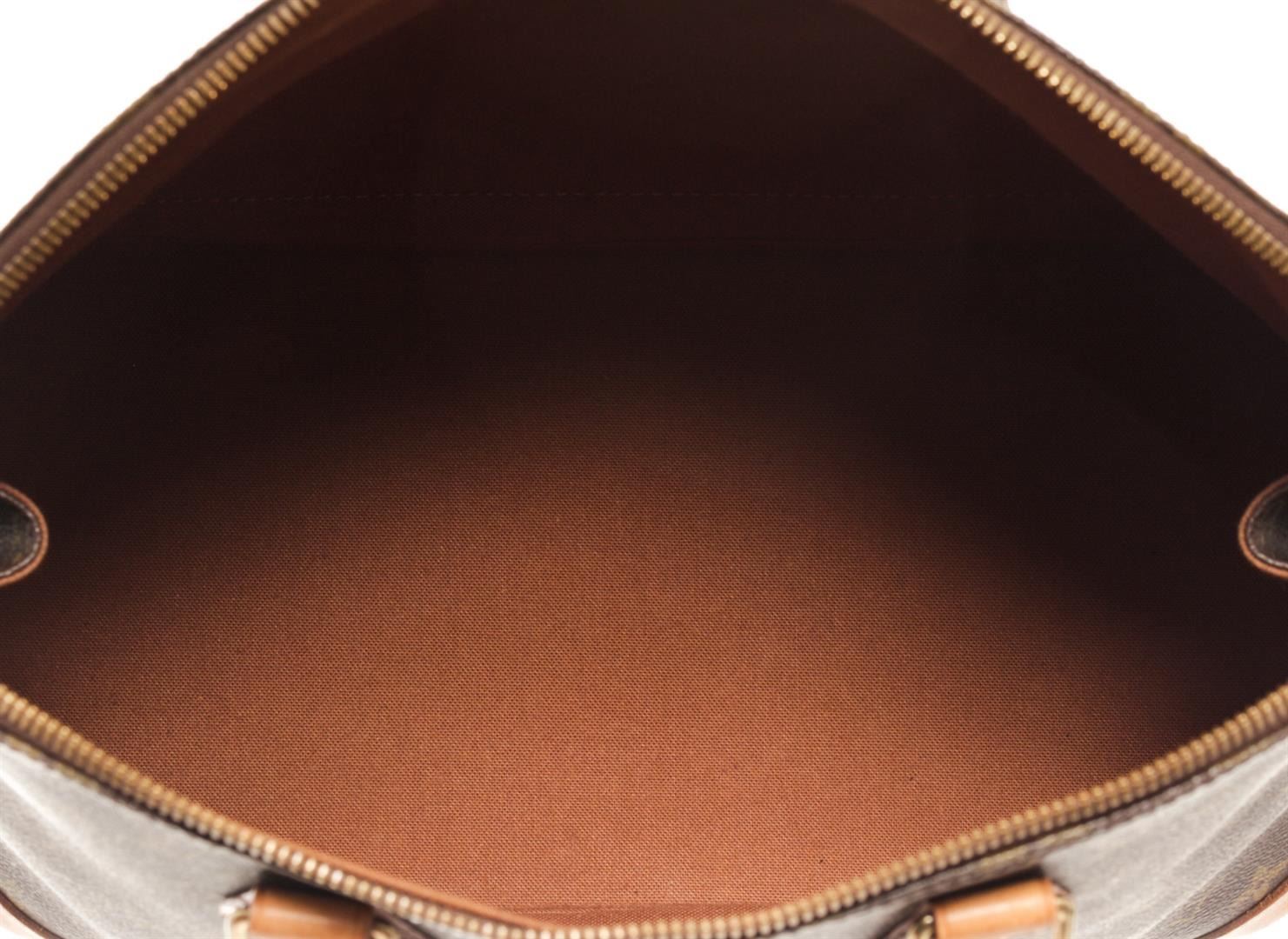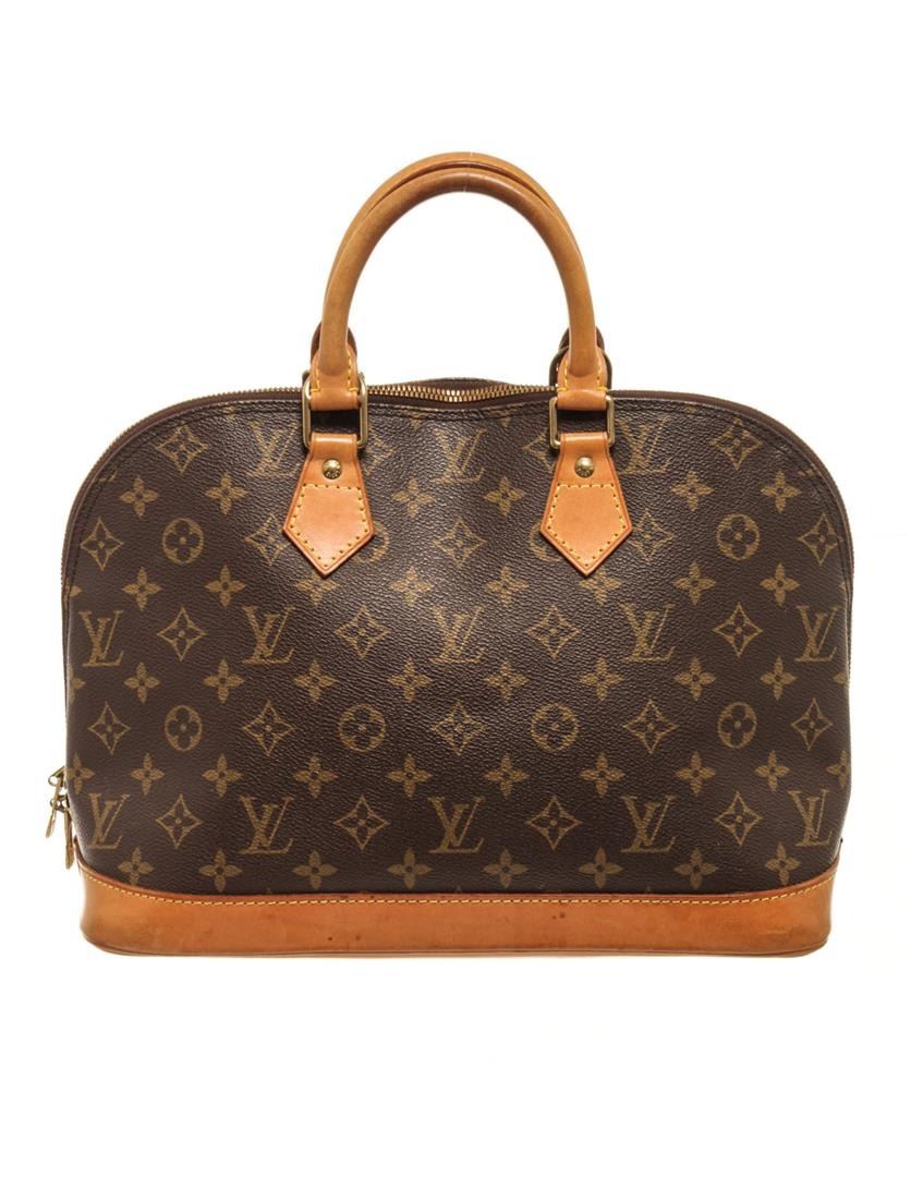 One Louis Vuitton Brown Monogram Canvas Alma PM Handbag. Item is sold AS-IS. All available information is listed in the description and shown in the photo. Louis Vuitton Brown Monogram Canvas Alma PM Handbag with the alma pm features a monogram canvas body, rolled leather handles, a leather bottom, a top zip closure, and an interior slip pocket. There is a huge brown stain on bottom of bag as shown in photos. 9.05" x 11.41" x 6.10" Inches / Length: 23.00cm x Width: 29.00cm x Depth: 15.50cm.