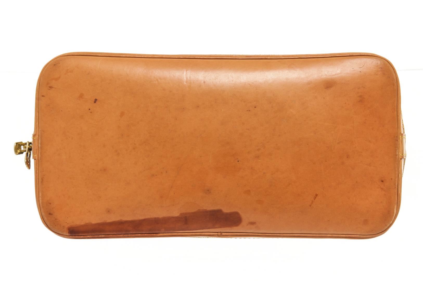 One Louis Vuitton Brown Monogram Canvas Alma PM Handbag. Item is sold AS-IS. All available information is listed in the description and shown in the photo. Louis Vuitton Brown Monogram Canvas Alma PM Handbag with the alma pm features a monogram canvas body, rolled leather handles, a leather bottom, a top zip closure, and an interior slip pocket. There is a huge brown stain on bottom of bag as shown in photos. 9.05" x 11.41" x 6.10" Inches / Length: 23.00cm x Width: 29.00cm x Depth: 15.50cm.