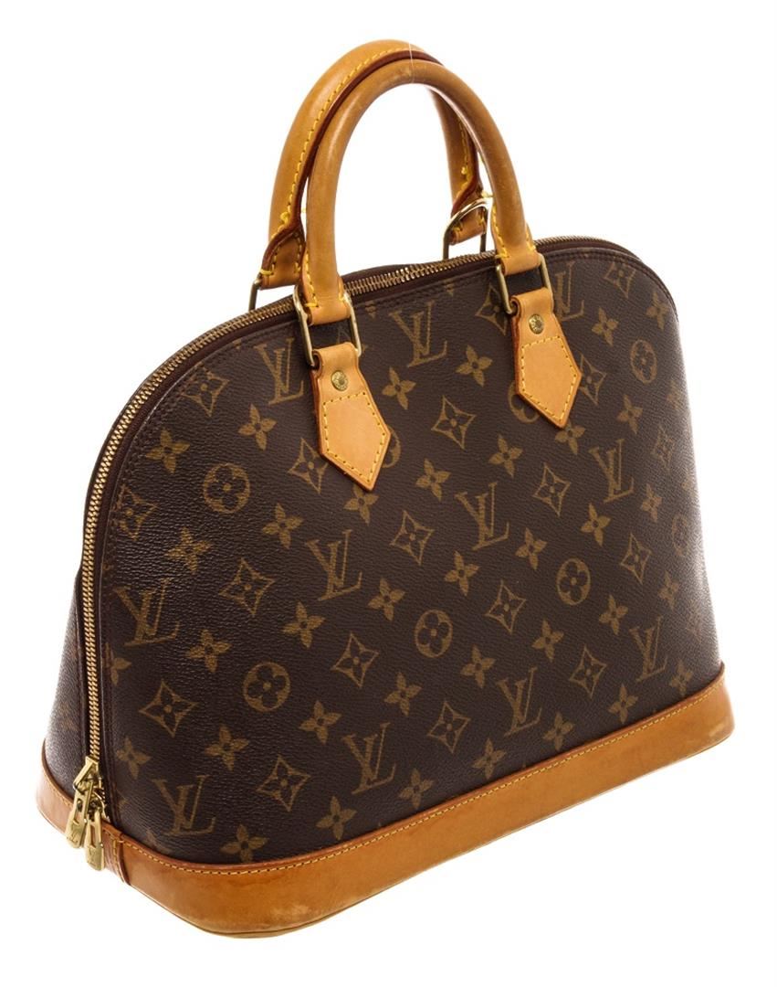Louis Vuitton Brown Monogram Canvas Alma PM Satchel Bag. All available information is listed in the description and shown in the photos. Louis Vuitton Brown Monogram Canvas Alma PM Satchel Bag with brass hardware, leather trim, dual rolled handles, leather trim embellishment, canvas lining & dual interior pockets, zip closure at top. Height: 9" Width: 12" Depth: 7", Handle Drop: 3.75" / 22.86 x 30.48 x 17.78 Cm