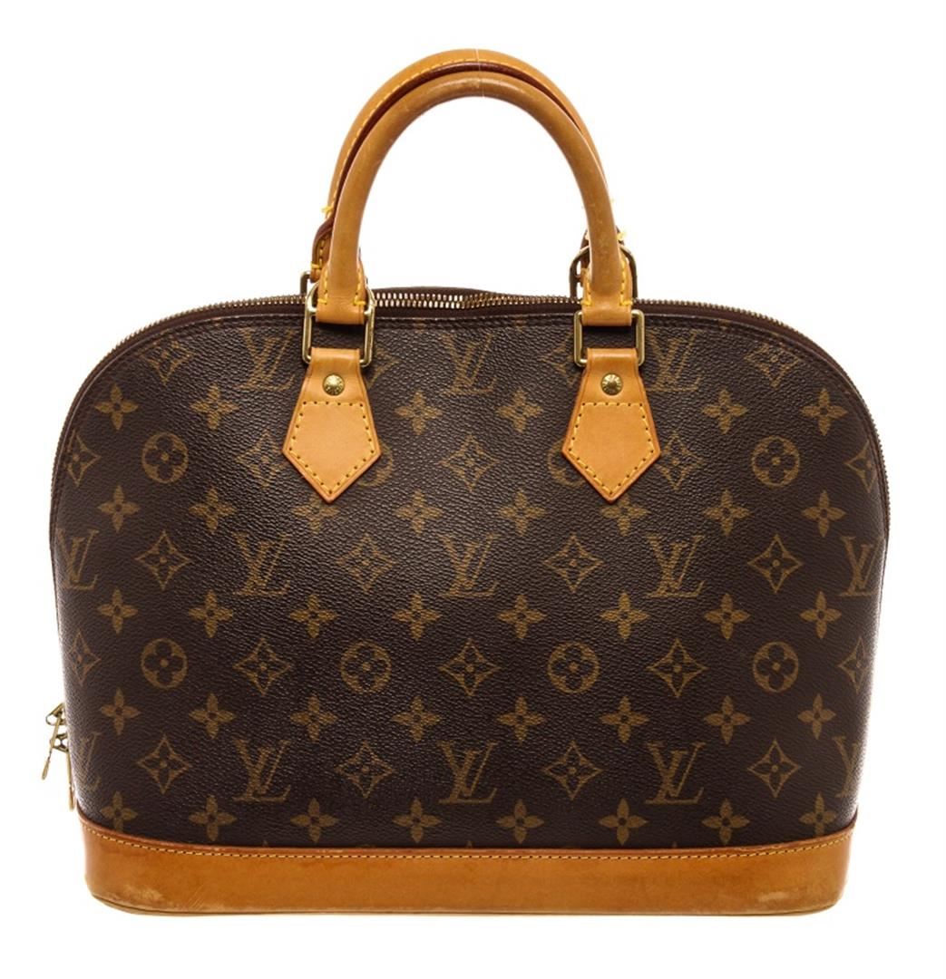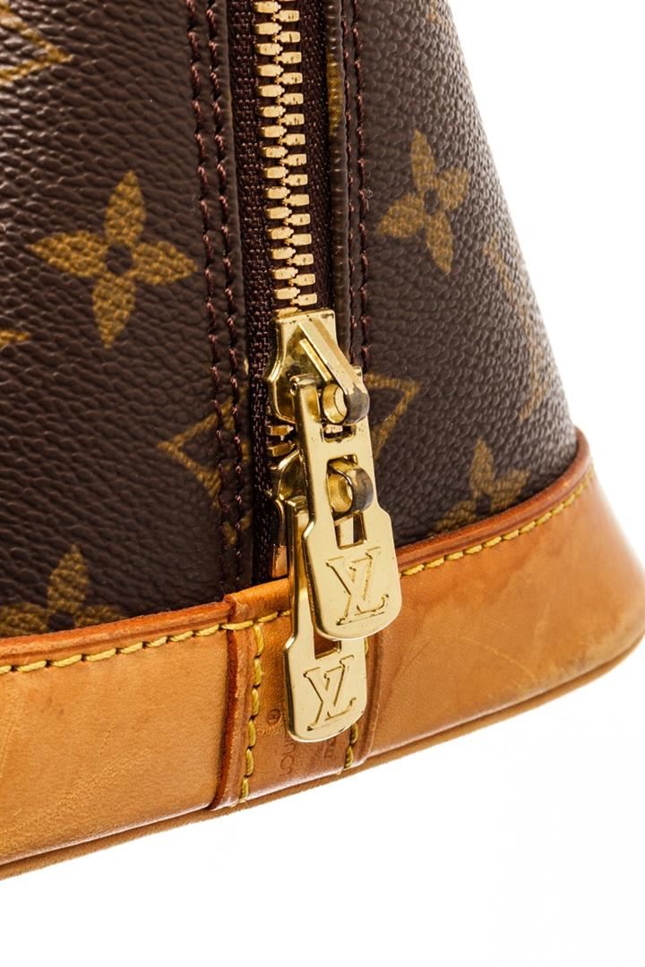 Louis Vuitton Brown Monogram Canvas Alma PM Satchel Bag. All available information is listed in the description and shown in the photos. Louis Vuitton Brown Monogram Canvas Alma PM Satchel Bag with brass hardware, leather trim, dual rolled handles, leather trim embellishment, canvas lining & dual interior pockets, zip closure at top. Height: 9" Width: 12" Depth: 7", Handle Drop: 3.75" / 22.86 x 30.48 x 17.78 Cm