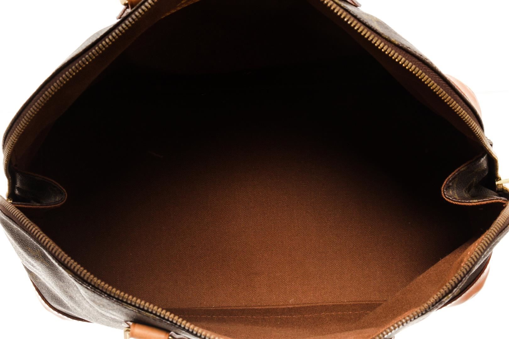One Louis Vuitton Brown Monogram Canvas Alma PM Satchel Bag. Item is sold AS-IS. All available information is listed in the description and shown in the photo. brown louis vuitton monogram alma pm bag with the alma pm features a monogram canvas body, rolled leather handles, a leather bottom, a top zip closure, and an interior slip pocket. 8.9" L x 11.4" W x 5.9" D / 22.60 x 28.95 x 14.98 CM