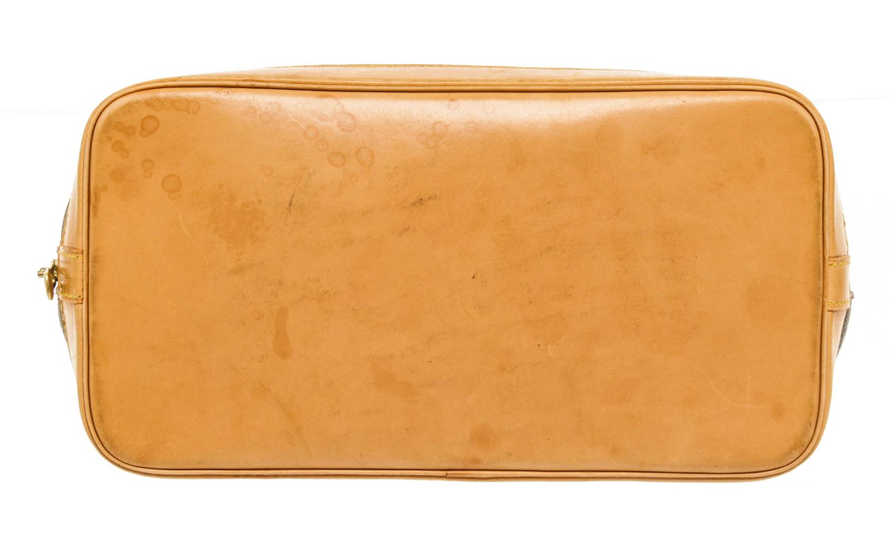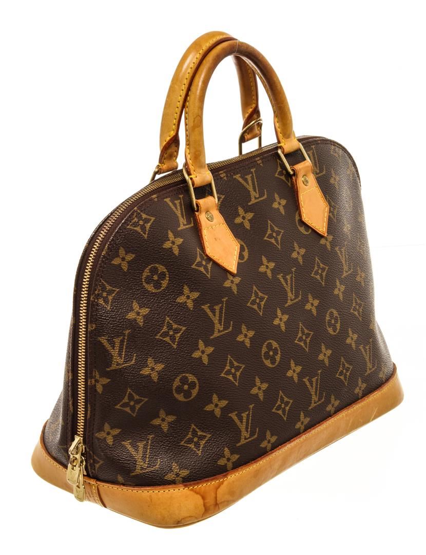 One Louis Vuitton Brown Monogram Canvas Alma PM Satchel Bag. Item is sold AS-IS. All available information is listed in the description and shown in the photo. brown louis vuitton monogram alma pm bag with the alma pm a monogram canvas body, rolled leather handles, a leather bottom, a top zip closure, and an interior slip pocket. 8.9" L x 11.4" W x 5.9" D / 22.60 x 28.95 x 14.98 CM