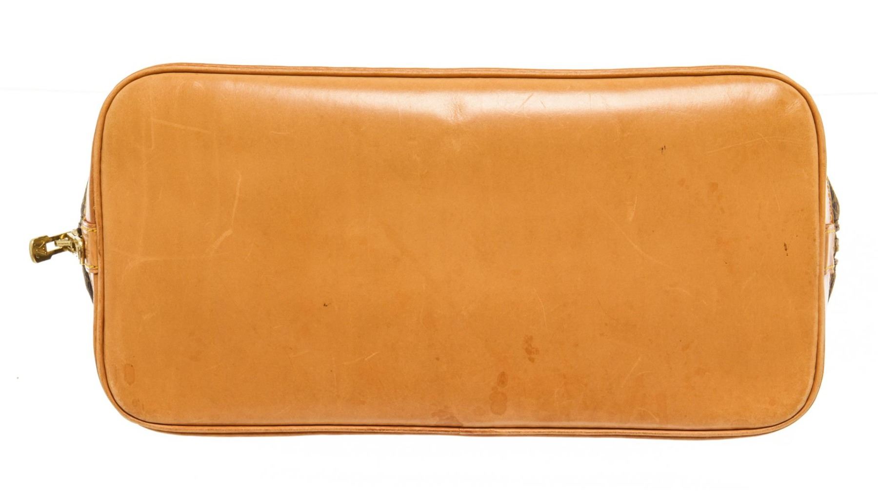 One Louis Vuitton Brown Monogram Canvas Alma PM Satchel Bag. Item is sold AS-IS. All available information is listed in the description and shown in the photo. brown louis vuitton monogram alma pm bag with the alma pm features a monogram canvas body, rolled leather handles, a leather bottom, a top zip closure, and an interior slip pocket. 8.9" L x 11.4" W x 5.9" D / 22.60 x 28.95 x 14.98 CM
