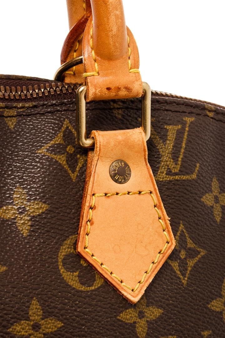 Louis Vuitton Brown Monogram Canvas Alma Satchel Bag. All available information is listed in the description and shown in the photos. Louis Vuitton Brown Monogram Canvas Alma Satchel Bag with gold-tone hardware, trim tan vachetta leather, brown canvas lining, leather trim inside, golden brass pieces, rounded leather handles. H:9.25" x W:11.81" x D:6.29" / H:23.5cm x W:30cm x D:16cm