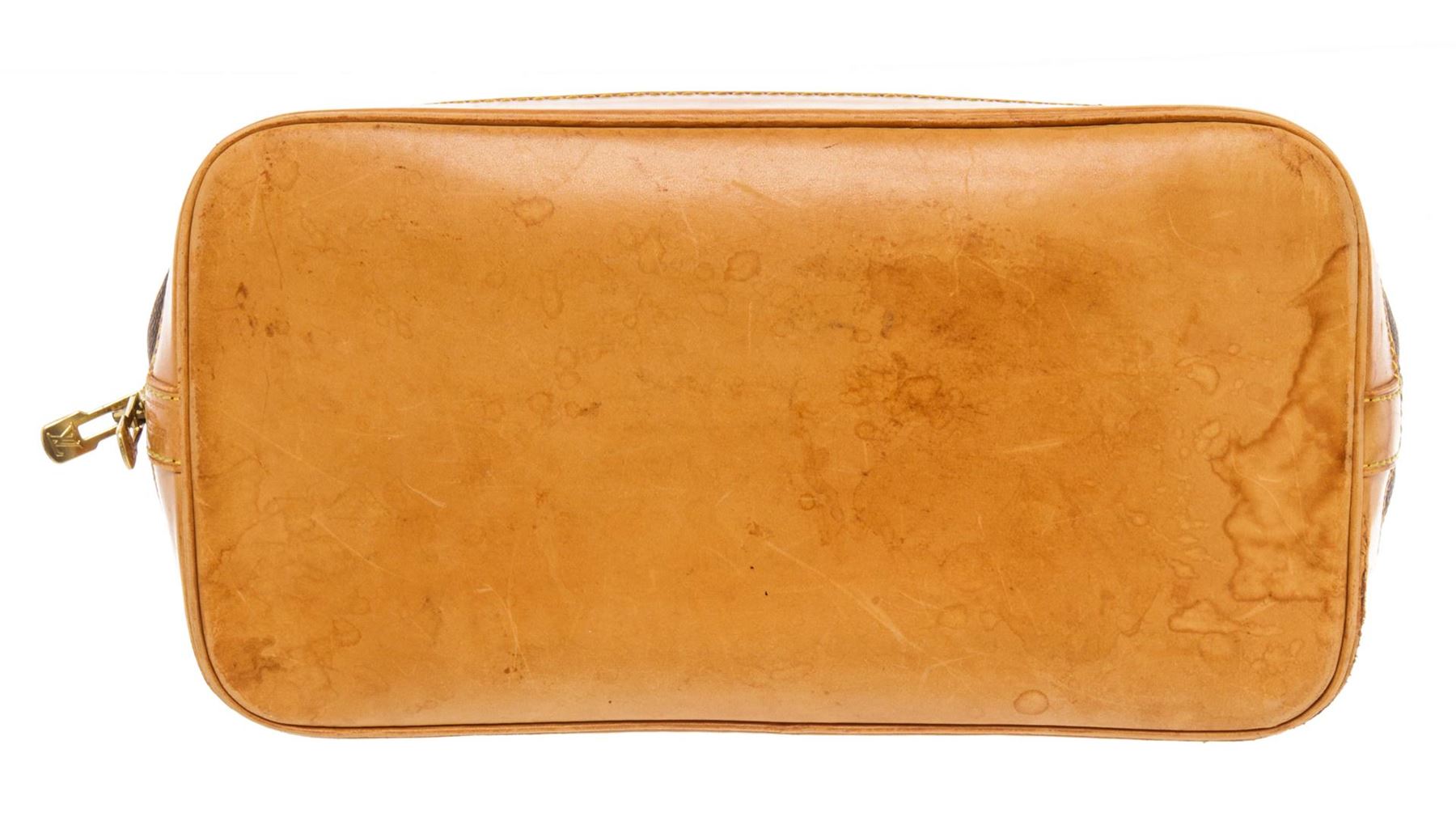 Louis Vuitton Brown Monogram Canvas Alma Satchel Bag. All available information is listed in the description and shown in the photos. Louis Vuitton Brown Monogram Canvas Alma Satchel Bag with gold-tone hardware, trim tan vachetta leather, brown canvas lining, leather trim inside, golden brass pieces, rounded leather handles. H:9.25" x W:11.81" x D:6.29" / H:23.5cm x W:30cm x D:16cm