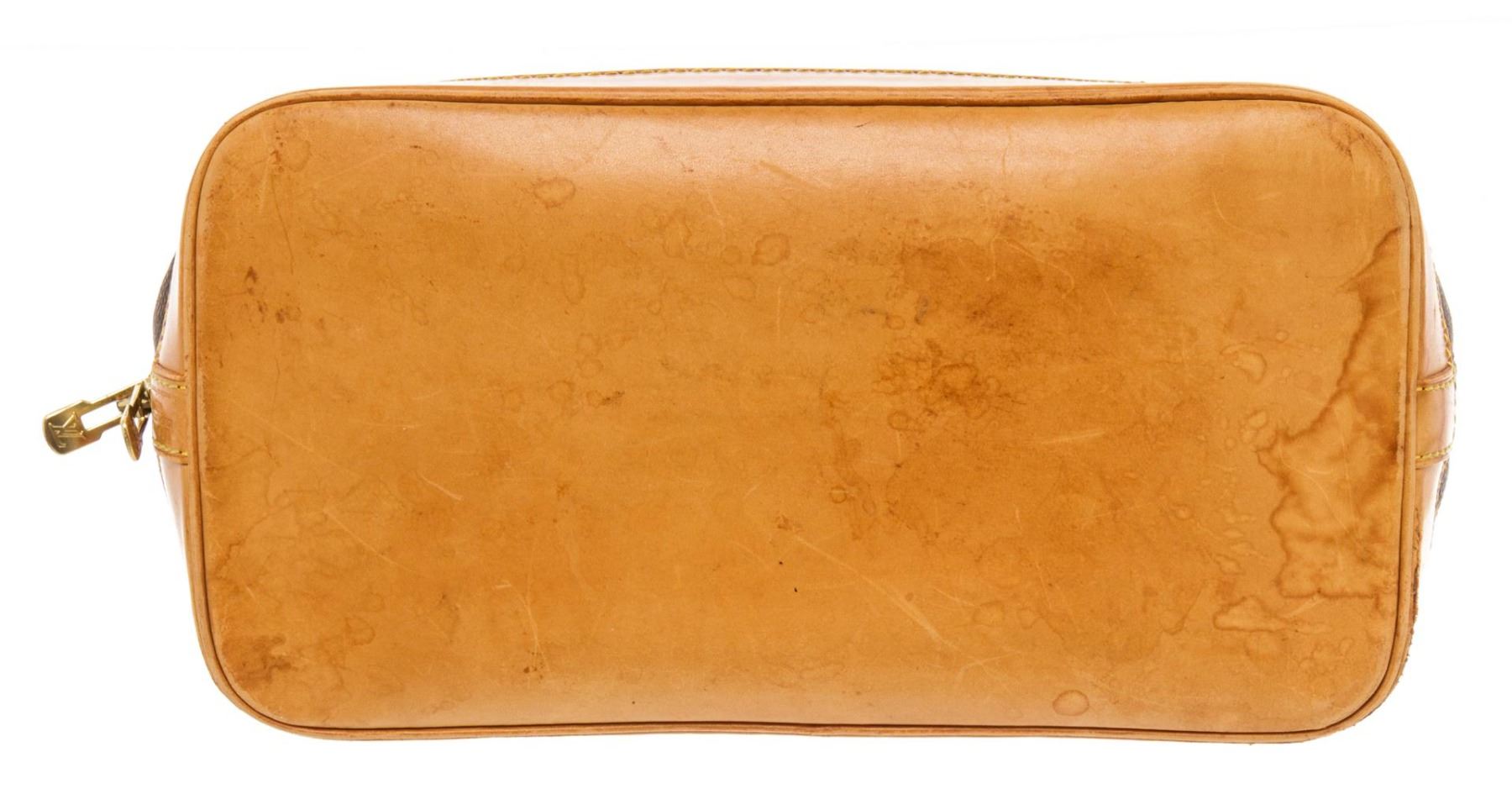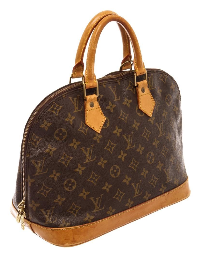 Louis Vuitton Brown Monogram Canvas Alma Satchel Bag. All available information is listed in the description and shown in the photos. Louis Vuitton Brown Monogram Canvas Alma Satchel Bag with gold-tone hardware, trim tan vachetta leather, brown canvas lining, leather trim inside, golden brass pieces, rounded leather handles. H:9.25" x W:11.81" x D:6.29" / H:23.5cm x W:30cm x D:16cm