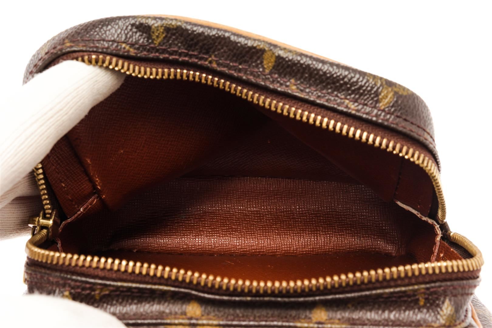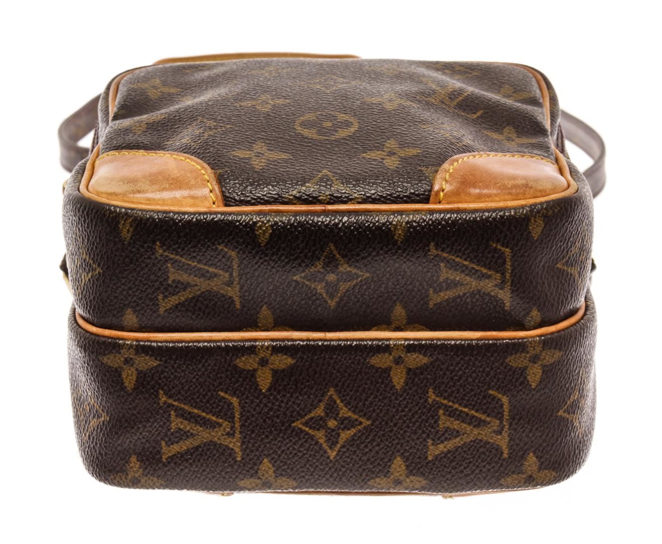 Louis Vuitton Brown Monogram Canvas Amazone Crossbody Bag. All available information is listed in the description and shown in the photos. Louis Vuitton Brown Monogram Canvas Amazone Crossbody Bag with tan vachetta leather trim, brass hardware, adjustable shoulder strap, exterior zip pocket, interior slip pocket and top zip closure. Height: 22.86 cm (9 in), Width: 15.24 cm (6 in), Depth: 8.89 cm (3.5 in)
