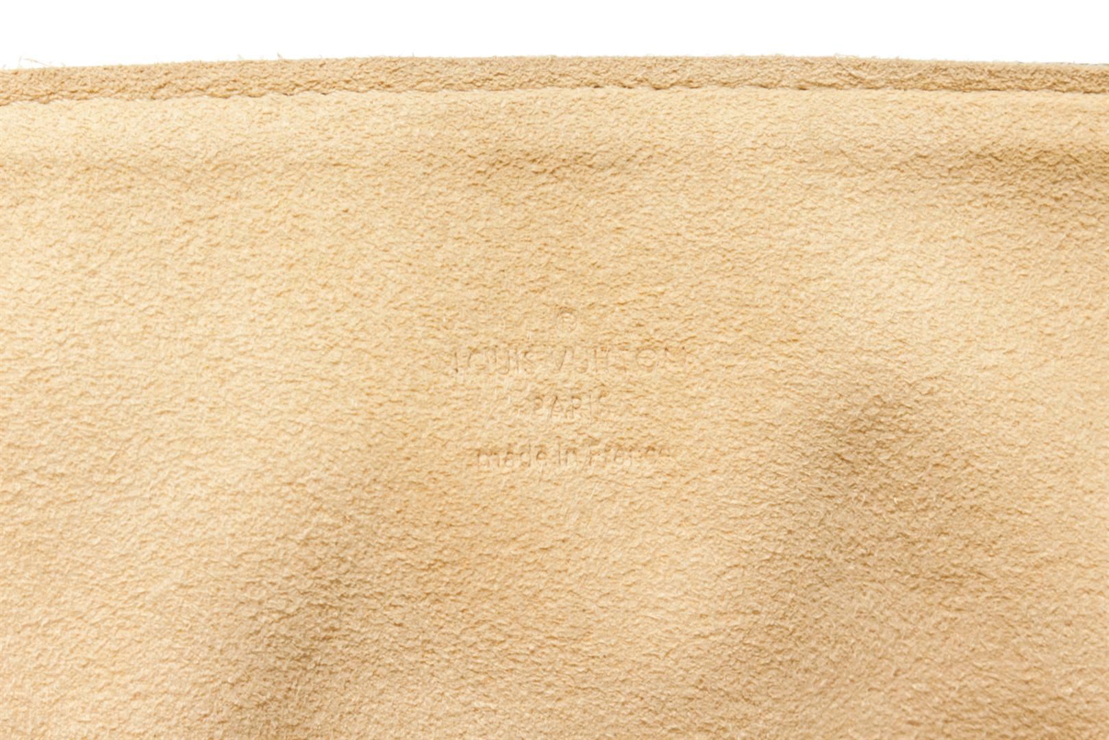 One Louis Vuitton Brown Monogram Canvas Beverly GM Bag. Item is sold AS-IS. All available information is listed in the description and shown in the photo. Louis Vuitton Brown Monogram Canvas Beverly GM Bag with vachetta leather shoulder strap, suede lining, two interior pockets, snap closure. There are some marking on the suede lining. Please refer to photos. Height: 8.67" Width: 7.09" Depth: 14.57", Handle Drop: / 22 x 18 x 37 Cm