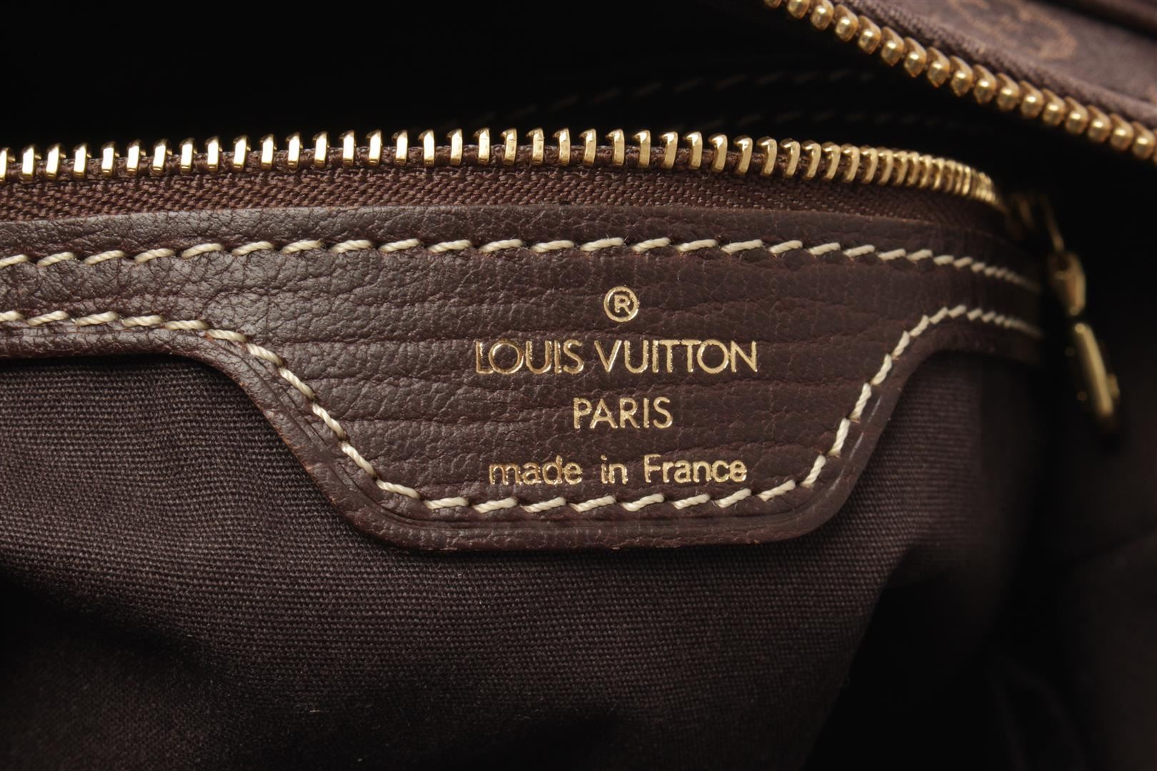 One Louis Vuitton Brown Monogram Canvas Boulogne Shoulder Bag. Item is sold AS-IS. All available information is listed in the description and shown in the photo. dark brown monogram mini lin canvas, this elegant shoulder bag with gold-tone hardware accents, its top zip closure opens to a brown fabric-lined interior with zip and slip pockets perfect for daily essentials. Height: 20.32 cm (8 in), Width: 29.21 cm (11.5 in), Depth: 10.16 cm (4 in)