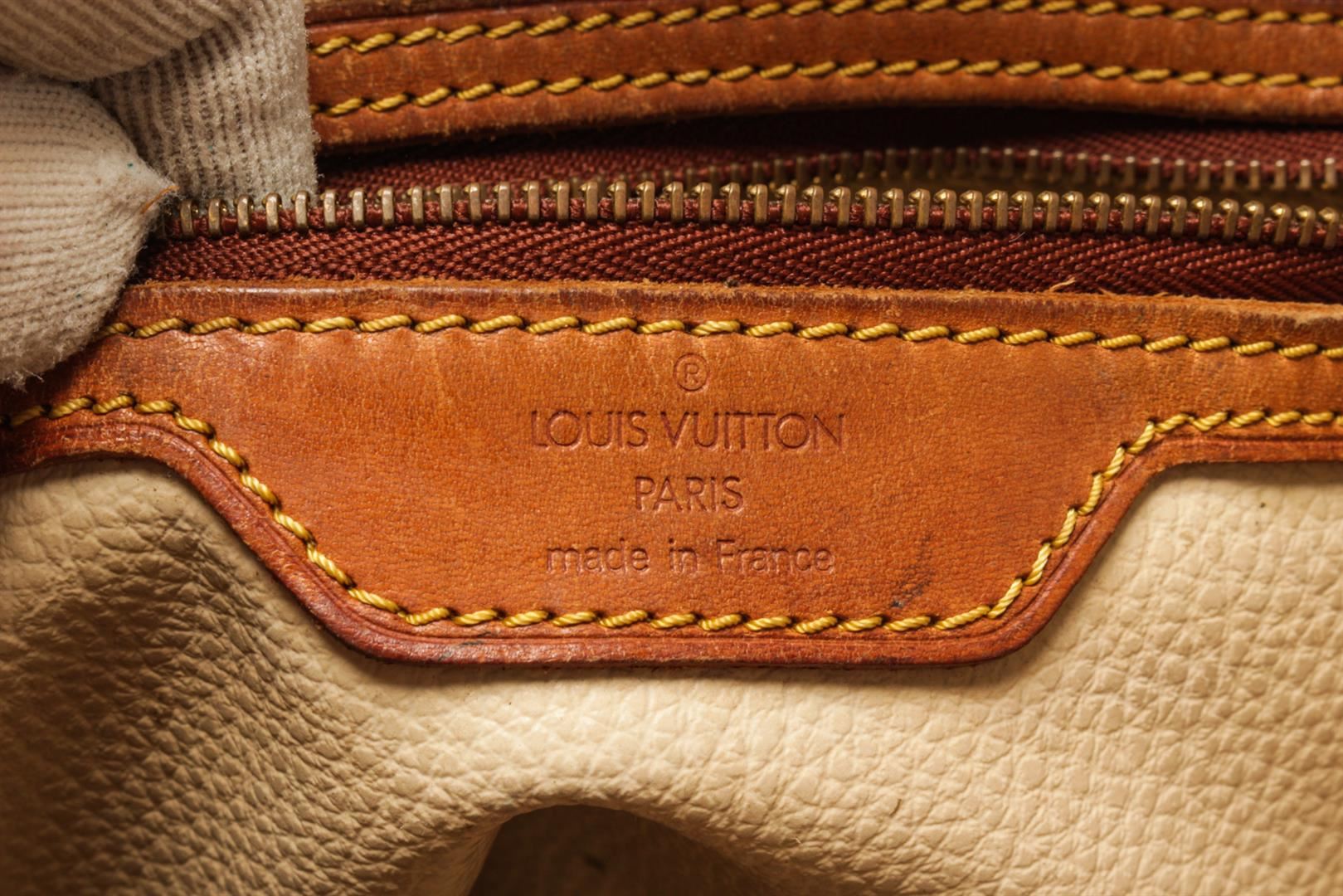 One Louis Vuitton Brown Monogram Canvas Bucket PM Shoulder Bag. Item is sold AS-IS. All available information is listed in the description and shown in the photo. Louis Vuitton Brown Monogram Canvas Bucket PM Shoulder Bag with shoulder strap, leather lining, interior pocket, gold tone hardware. Bottom is worn, top lining and handle is replaced, markings in leather lining. Please refer to photos.