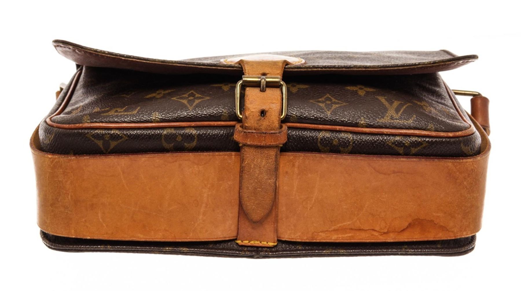 Louis Vuitton Brown Monogram Canvas Cartouchiere GM Messenger Bag. All available information is listed in the description and shown in the photos. Louis Vuitton Brown Monogram Canvas Cartouchiere GM Messenger Bag with brown coated canvas, brass hardware, leather trim, single adjustable shoulder strap, leather trim embellishment, leather lining, buckle closure at front. Height: 9.25" Width: 9.75" Depth: 3.25", Shoulder Strap Drop: 18.5-20.75" / 23.49 x 24.76 x 8.25 Cm