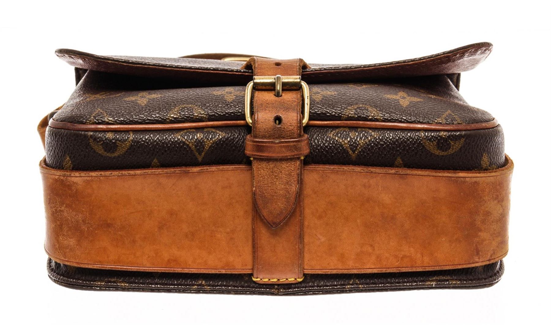 Louis Vuitton Brown Monogram Canvas Cartouchiere MM Messenger Bag. All available information is listed in the description and shown in the photos. Louis Vuitton Brown Monogram Canvas Cartouchiere MM Messenger Bag with brown coated canvas, brass hardware, leather trim, single adjustable shoulder strap, leather trim embellishment, leather lining, buckle closure at front. Height: 7.75" Width: 8" Depth: 3", Shoulder Strap Drop: 19.75" / 19.68 x 20.32 x 7.62 Cm