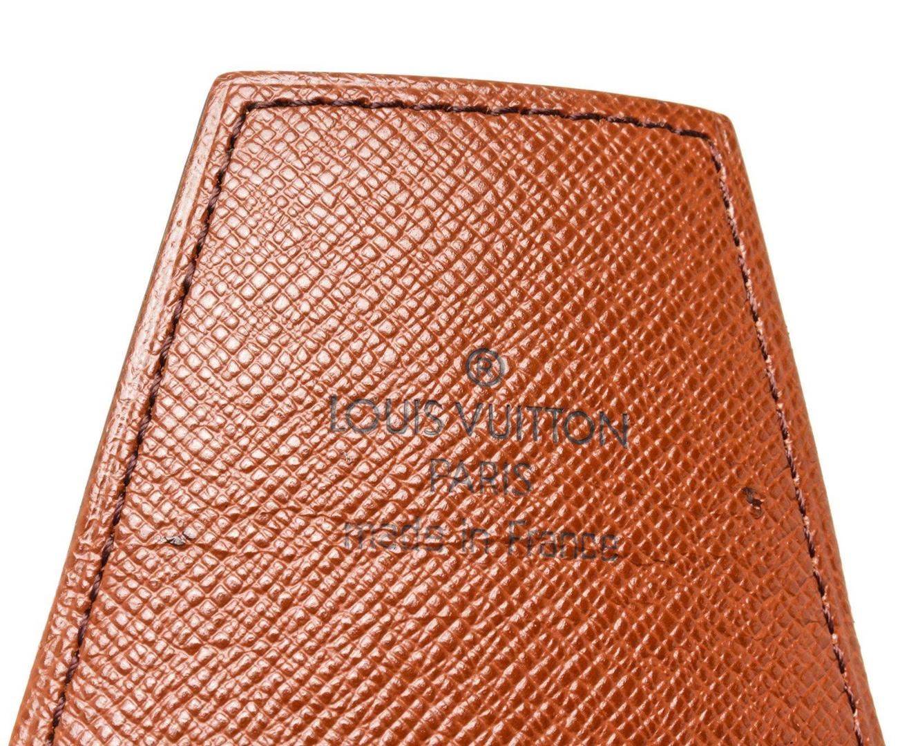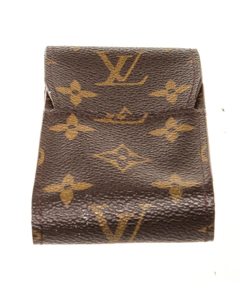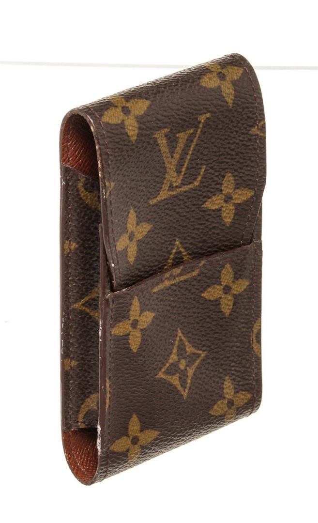 Louis Vuitton Brown Monogram Canvas Cigarette Case Clutch Bag with monogram canvas, gold-tone hardware, trim tan vachetta leather, interior slip pocket and snap closure.