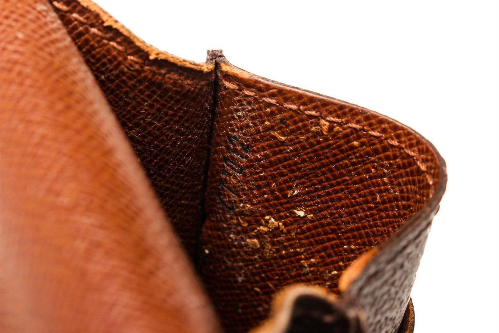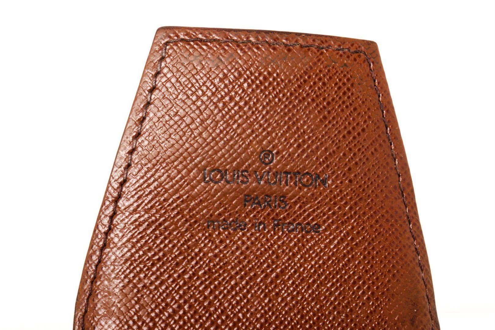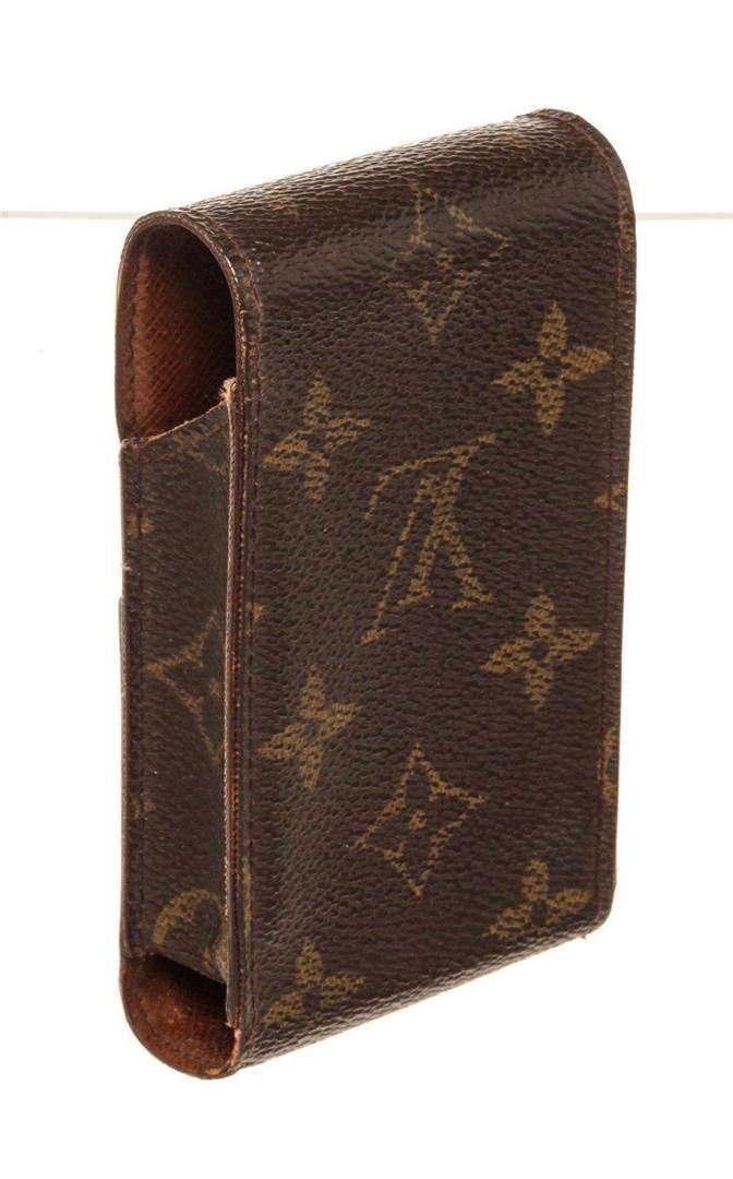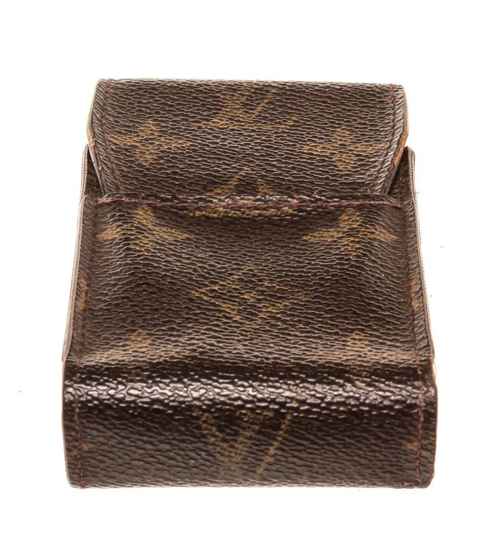 Louis Vuitton Brown Monogram Canvas Cigarette Case Clutch with monogram canvas, gold-tone hardware, trim tan vachetta leather, interior slip pocket and snap closure.