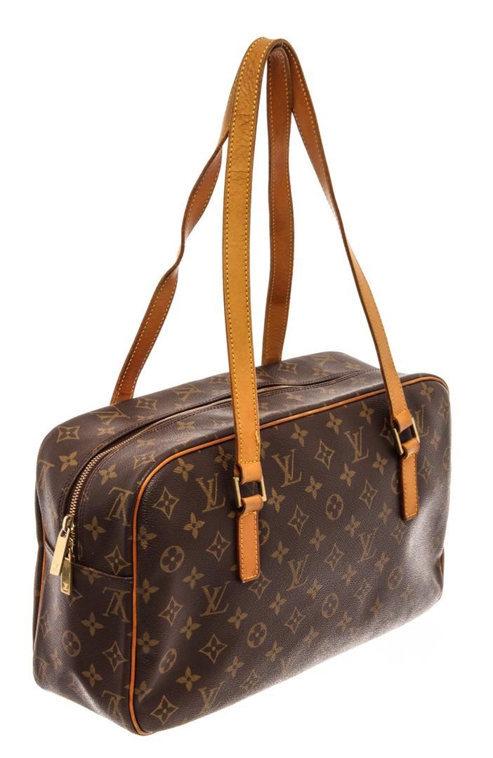 Louis Vuitton Brown Monogram Canvas Cite GM Shoulder Bag. All available information is listed in the description and shown in the photos. Louis Vuitton Brown Monogram Canvas Cite GM Shoulder Bag with brown coated canvas, brass hardware, dual shoulder straps, single exterior pocket, alcantara lining & dual interior pockets, zip closure at top. Height: 8.75" Width: 13.5" Depth: 3.75", Shoulder Strap Drop: 10.5" / 22.22 x 34.29 x 9.52 Cm