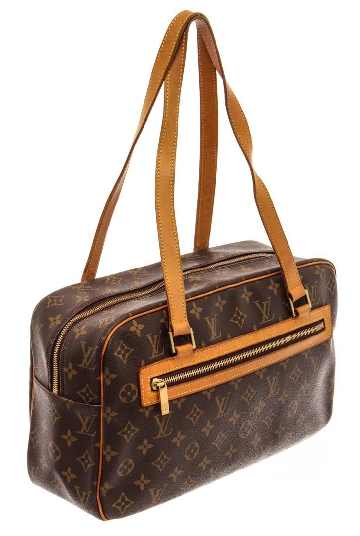 Louis Vuitton Brown Monogram Canvas Cite GM Shoulder Bag. All available information is listed in the description and shown in the photos. Louis Vuitton Brown Monogram Canvas Cite GM Shoulder Bag with brown coated canvas, brass hardware, dual shoulder straps, single exterior pocket, alcantara lining & dual interior pockets, zip closure at top. Height: 8.75" Width: 13.5" Depth: 3.75", Shoulder Strap Drop: 10.5" / 22.22 x 34.29 x 9.52 Cm