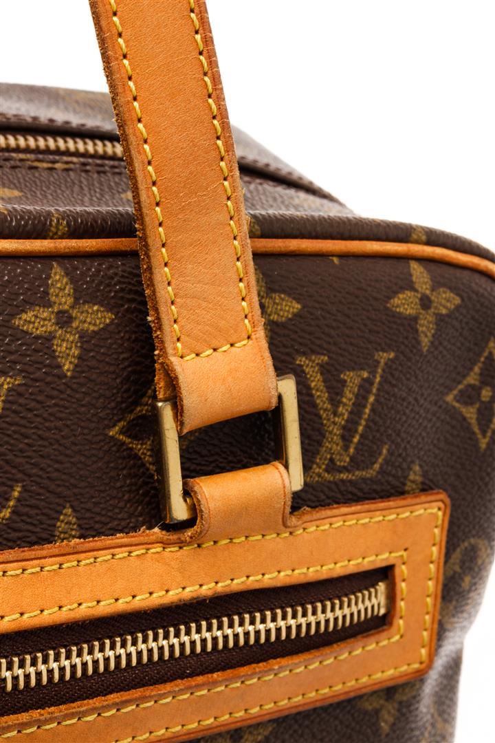 Louis Vuitton Brown Monogram Canvas Cite GM Shoulder Bag. All available information is listed in the description and shown in the photos. Louis Vuitton Brown Monogram Canvas Cite GM Shoulder Bag with brown coated canvas, brass hardware, dual shoulder straps, single exterior pocket, alcantara lining & dual interior pockets, zip closure at top. Height: 8.75" Width: 13.5" Depth: 3.75", Shoulder Strap Drop: 10.5" / 22.22 x 34.29 x 9.52 Cm