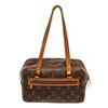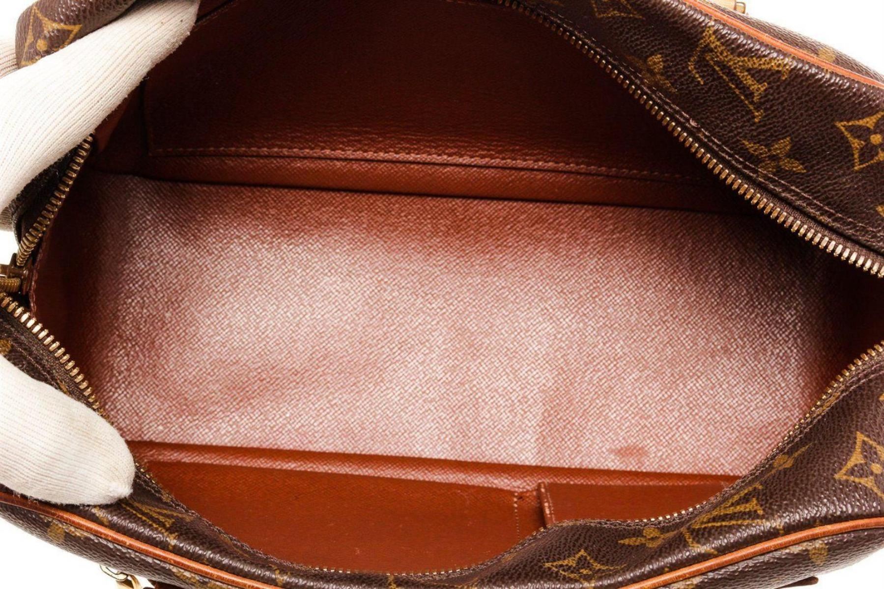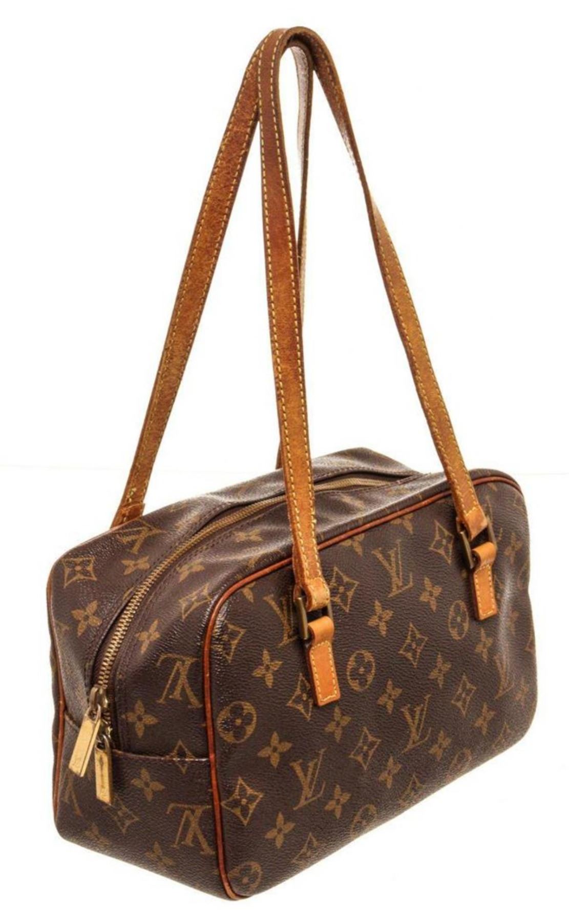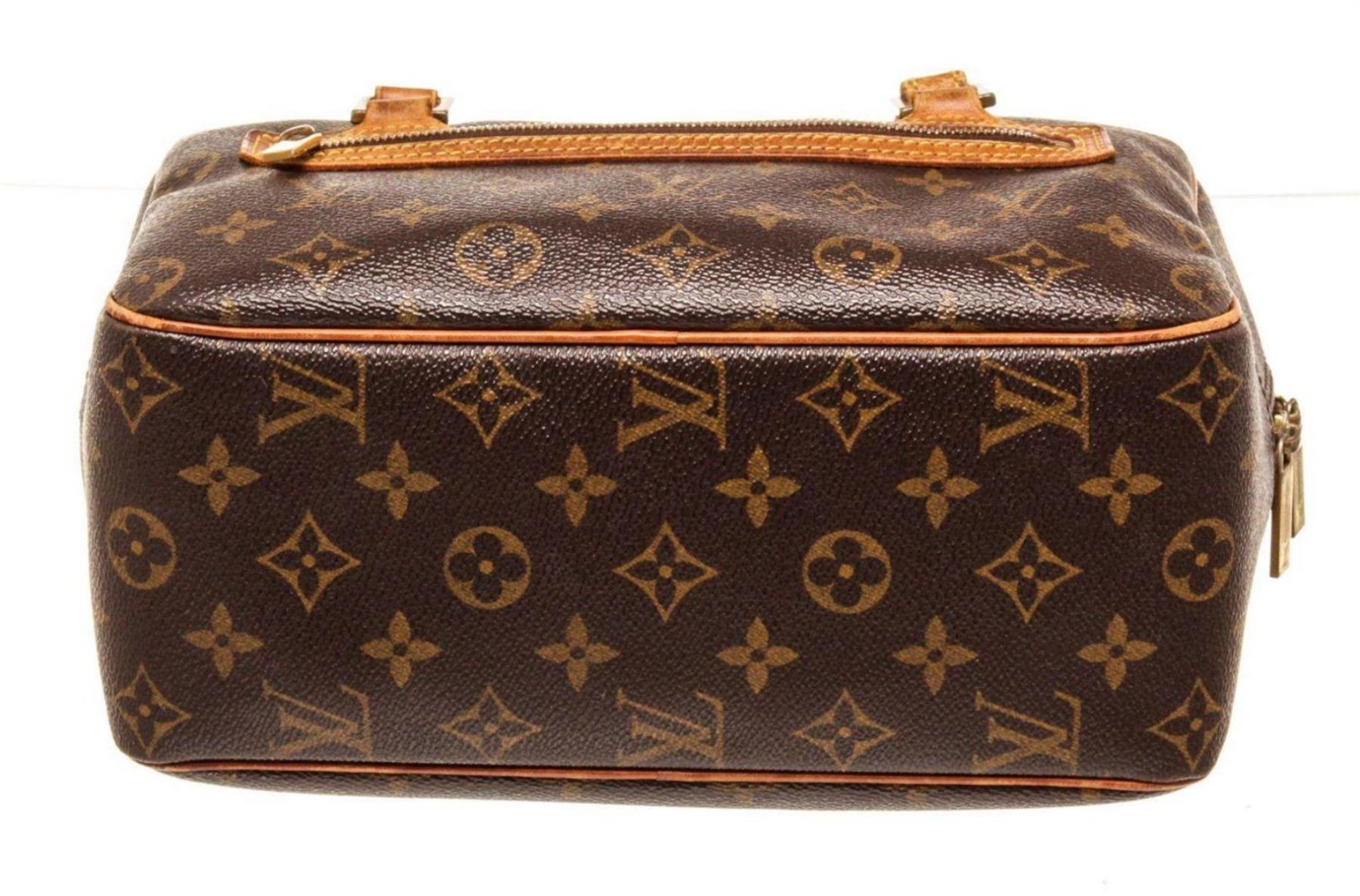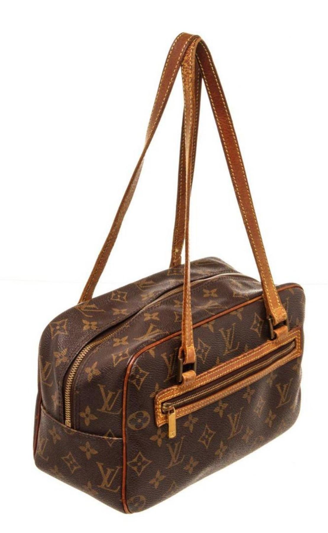 Louis Vuitton Brown Monogram Canvas Cite Shoulder Bag with monogram canvas, gold-tone hardware, trim tan vachetta leather, exterior zip pockets, interior slip pockets, leather lining, shoulder strap and zipper closure.