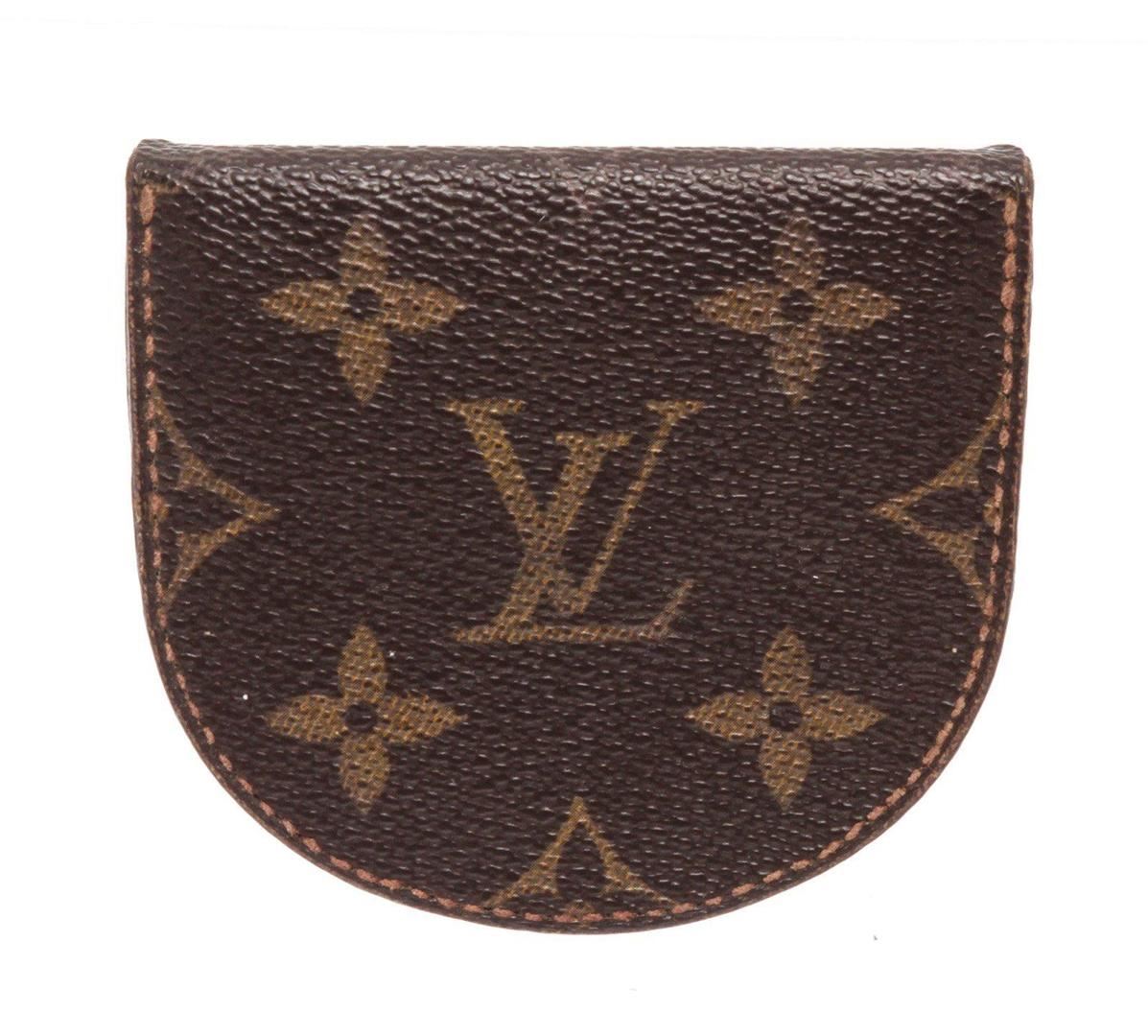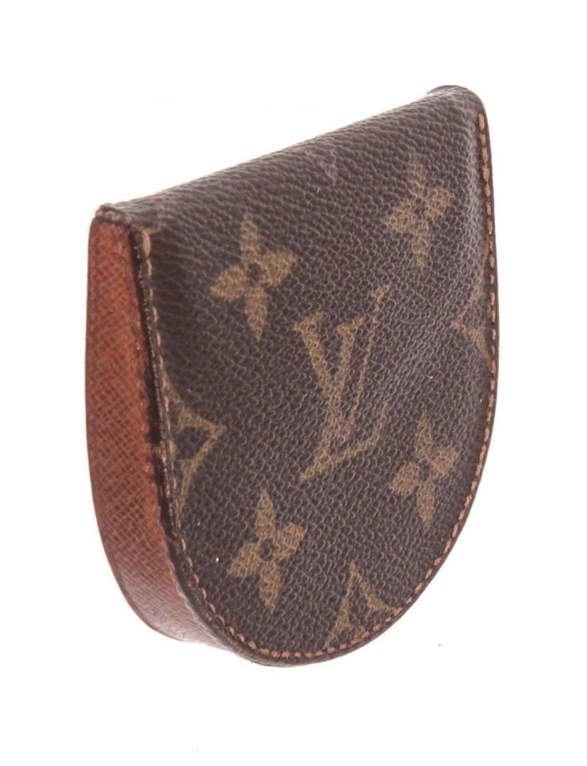 Louis Vuitton Brown Monogram Canvas Coin Purse Wallet with gold-tone hardware, tan vachetta leather trim, interior slip pockets, and snap closure. MEASUREMENTS: Length 0.75 in / 2 cm Width 4.25 in / 11 cm Height 3.25 in / 8 cm Condition: Pre-Owned Good overall, please see photographs for detail.