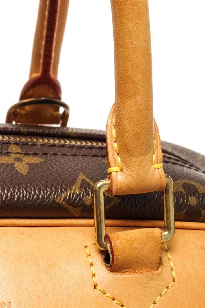 Louis Vuitton Brown Monogram Canvas Deauville Handbag. All available information is listed in the description and shown in the photos. louis vuitton brown monogram canvas deauville handbag W:13.38" x H:10.62" x D:5.11" / W34cm x H27cm x D13cm