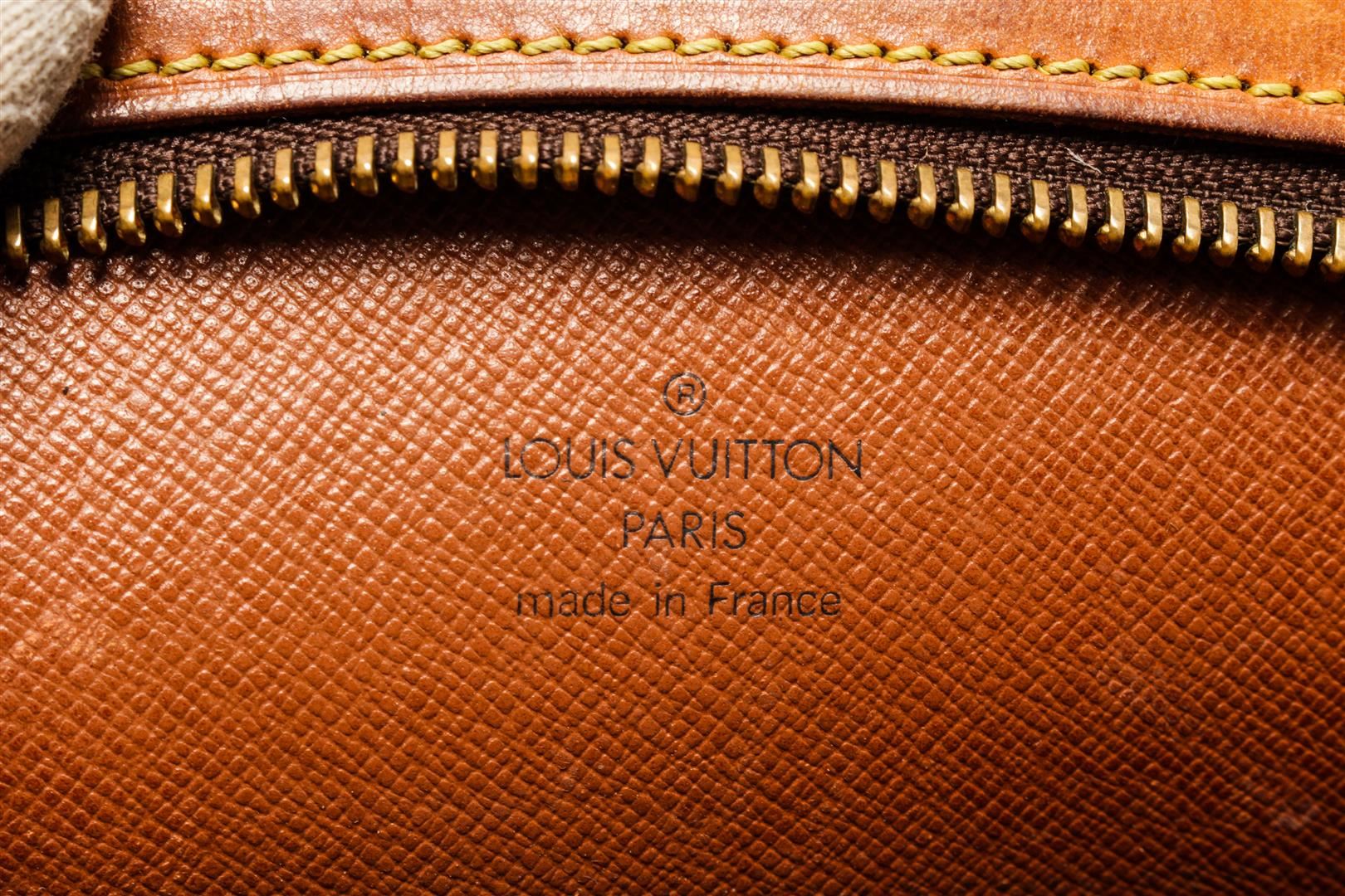 One Louis Vuitton Brown Monogram Canvas Drouot Shoulder Bag. Item is sold AS-IS. All available information is listed in the description and shown in the photo. louis vuitton brown monogram canvas drouot shoulder bag with gold-tone hardware, full lining, internal logo stamp, adjustable shoulder strap, zip closure. Depth 10 cm, Height 22 cm, Width 24 cm / 3.93" x 8.66" x 9.44" Inches