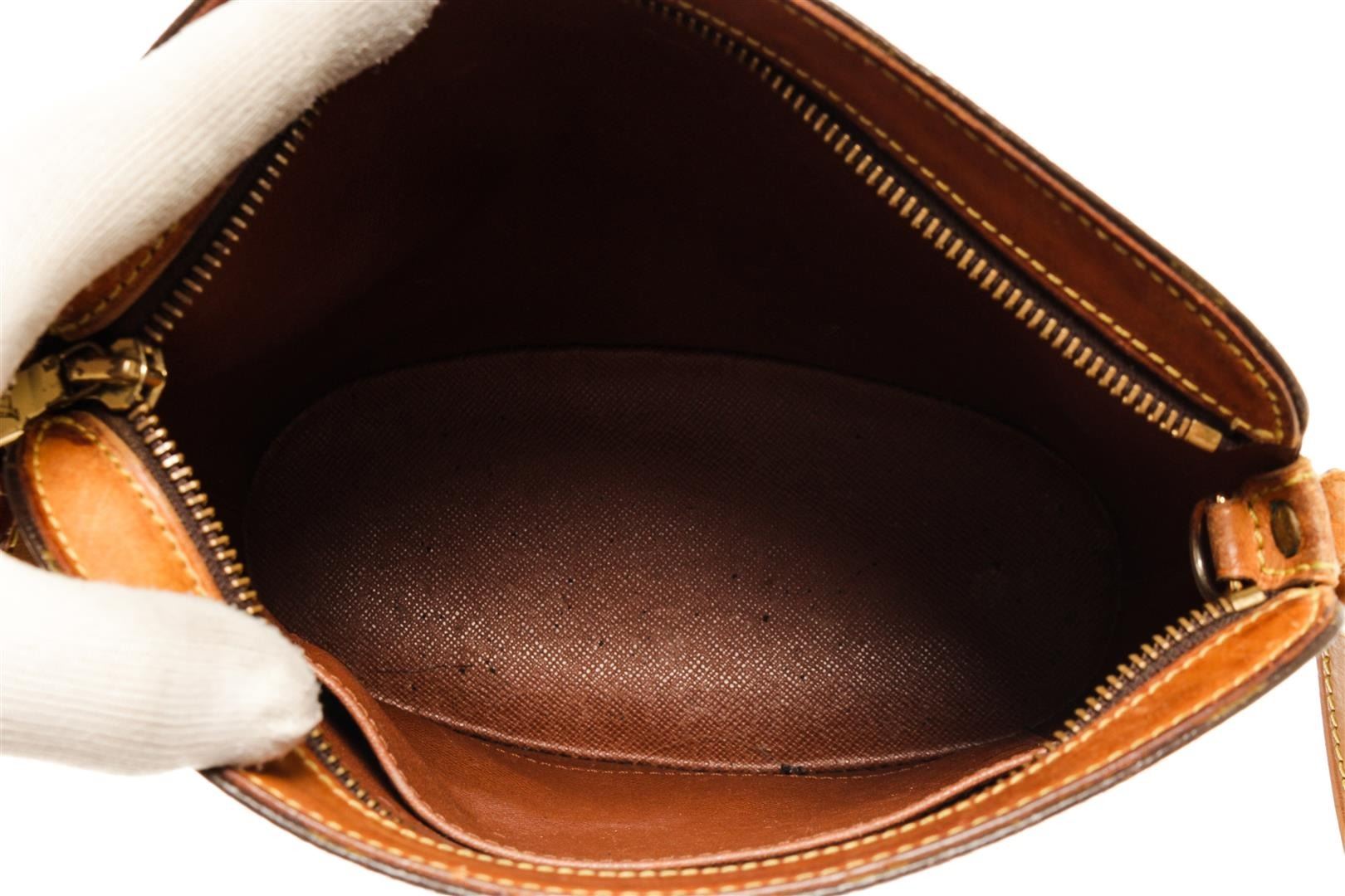 One Louis Vuitton Brown Monogram Canvas Drouot Shoulder Bag. Item is sold AS-IS. All available information is listed in the description and shown in the photo. louis vuitton brown monogram canvas drouot shoulder bag with gold-tone hardware, full lining, internal logo stamp, adjustable shoulder strap, zip closure. Depth 10 cm, Height 22 cm, Width 24 cm / 3.93" x 8.66" x 9.44" Inches
