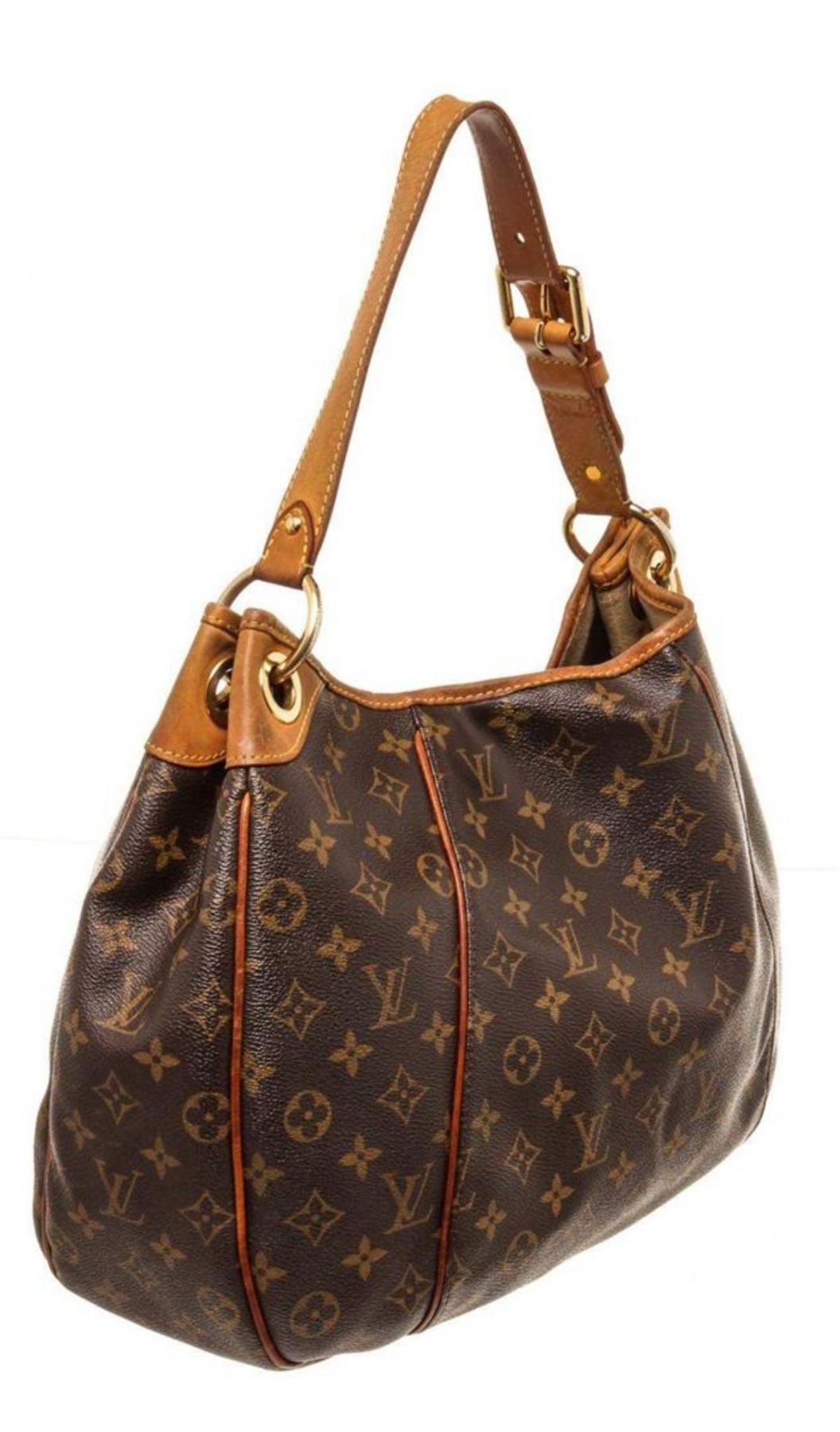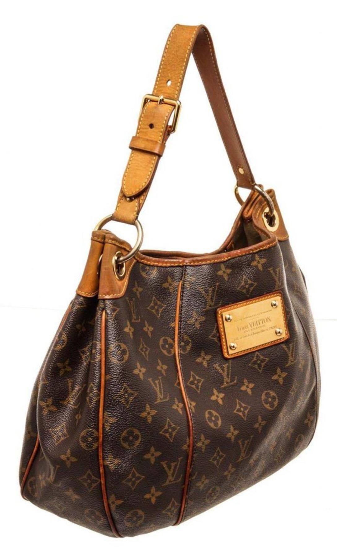 Louis Vuitton Brown Monogram Canvas Galliera PM Hobo Bag with monogram canvas, gold-tone hardware, trim tan vachetta leather, interior slip pockets, shoulder straps and snap closure.