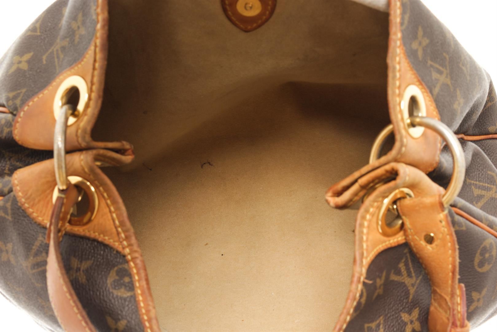One Louis Vuitton Brown Monogram Canvas Galliera PM Hobo Bag. Item is sold AS-IS. All available information is listed in the description and shown in the photo. louis vuitton brown monogram canvas galliera pm hobo bag with monogram canvas and leather, this bag features a single handle, a snap button closure, and gold tone hardware. Height: 11.03" Width: 4.34" Depth: 14.97, Handle Drop: / 28.02 x 11.03 x 38.03 Cm