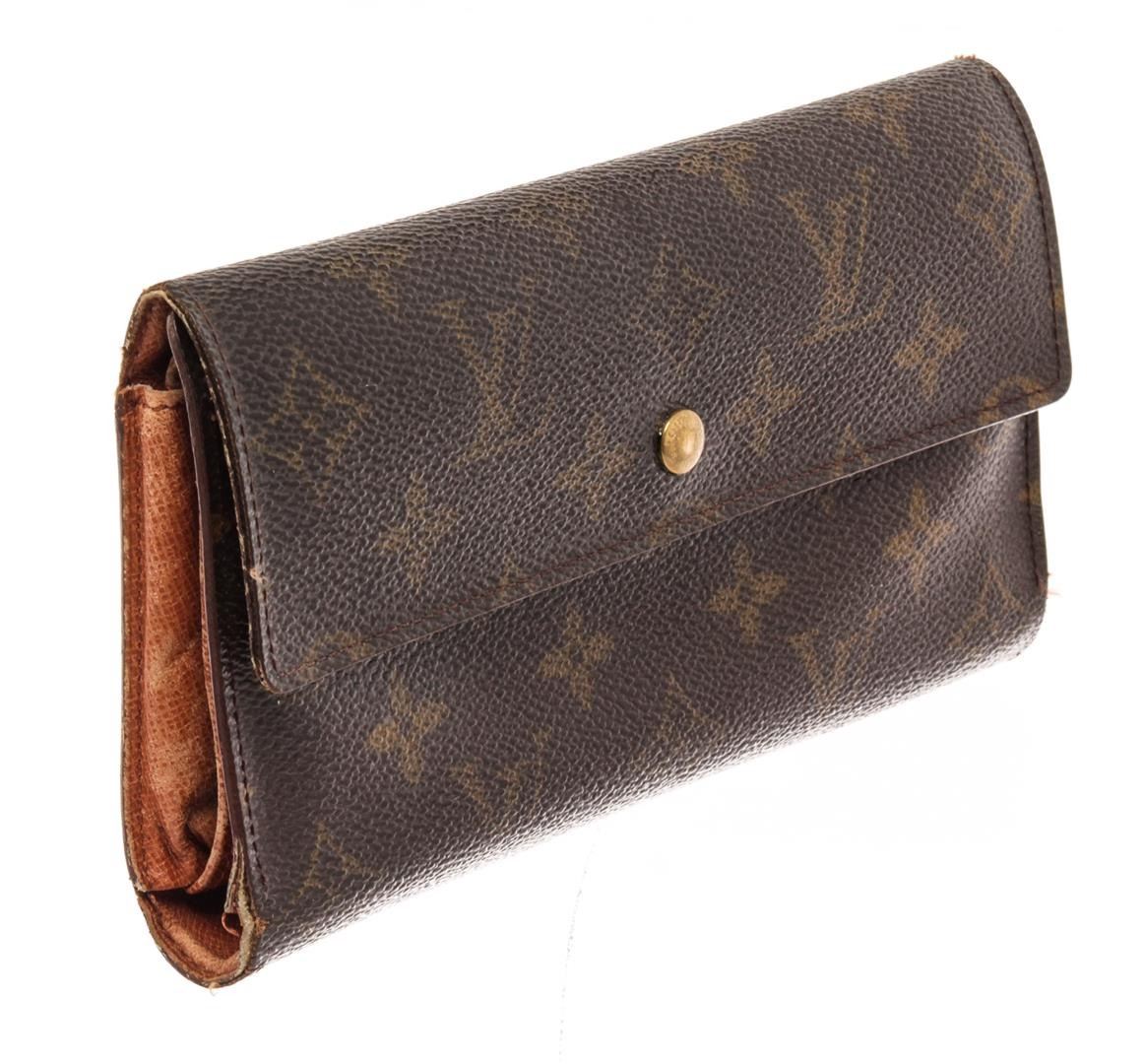 Louis Vuitton Brown Monogram Canvas International Wallet. All available information is listed in the description and shown in the photos. Louis Vuitton Brown Monogram Canvas International Wallet with brown coated canvas, brass hardware, leather lining with card slots, snap closure. Height: 4" Width: 7.5" Depth: 1", / 10.16 x 19.05 x 2.54 Cm