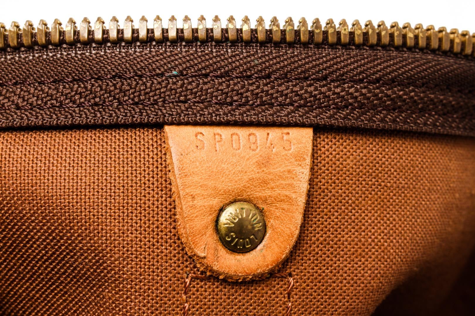 Louis Vuitton Brown Monogram Canvas Keepall 55 Travel Bag. All available information is listed in the description and shown in the photos. Louis Vuitton Brown Monogram Canvas Keepall 55 Travel Bag with gold-tone hardware, trim tan vachetta leather, brown canvas lining, leather trim inside, golden brass pieces, rounded leather handles. W55cm x H27cm x D25cm / 21.65" x 10.62" x 9.84"