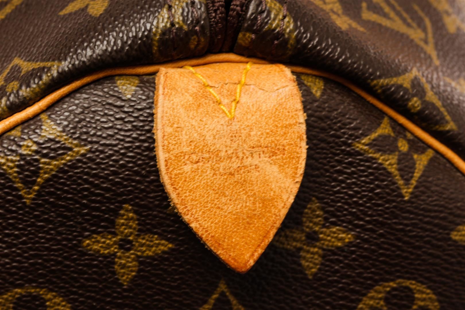 Louis Vuitton Brown Monogram Canvas Keepall 55 Travel Bag. All available information is listed in the description and shown in the photos. Louis Vuitton Brown Monogram Canvas Keepall 55 Travel Bag with gold-tone hardware, trim tan vachetta leather, brown canvas lining, leather trim inside, golden brass pieces, rounded leather handles. W55cm x H27cm x D25cm / 21.65" x 10.62" x 9.84"