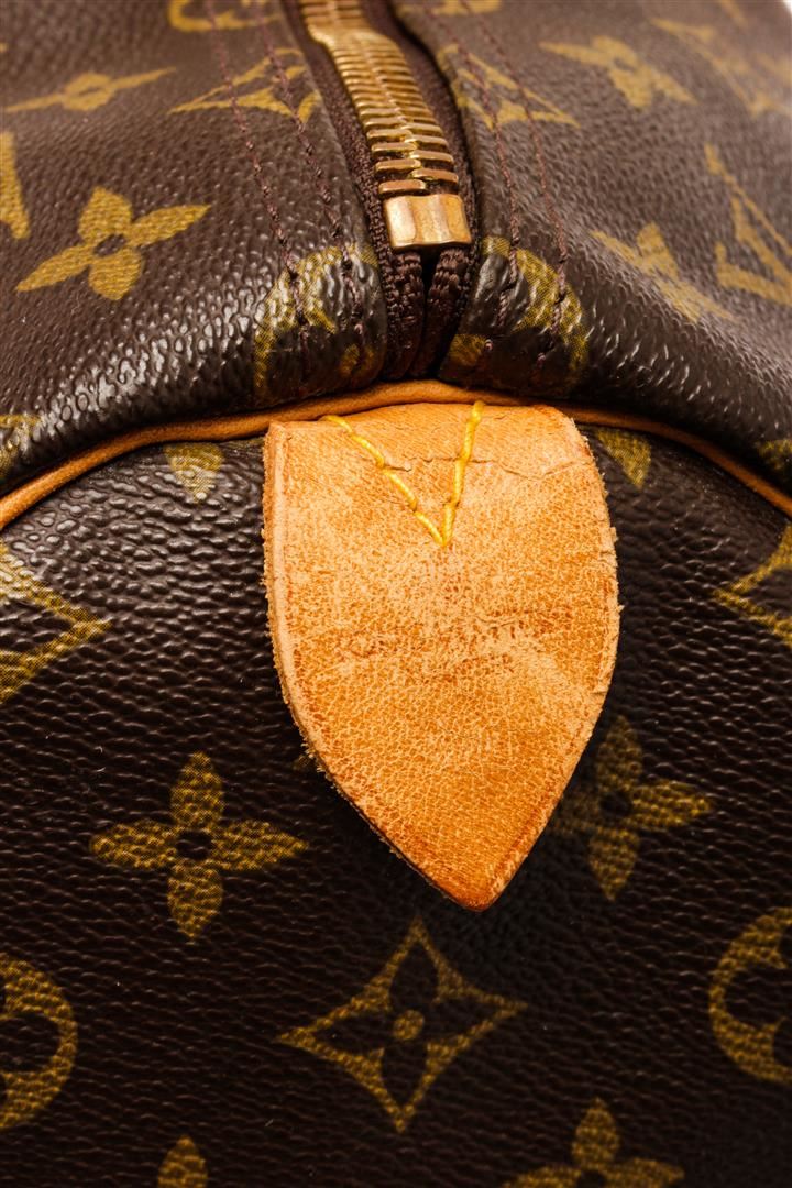 Louis Vuitton Brown Monogram Canvas Keepall 55 Travel Bag. All available information is listed in the description and shown in the photos. Louis Vuitton Brown Monogram Canvas Keepall 55 Travel Bag with gold-tone hardware, trim tan vachetta leather, brown canvas lining, leather trim inside, golden brass pieces, rounded leather handles. W55cm x H27cm x D25cm / 21.65" x 10.62" x 9.84"
