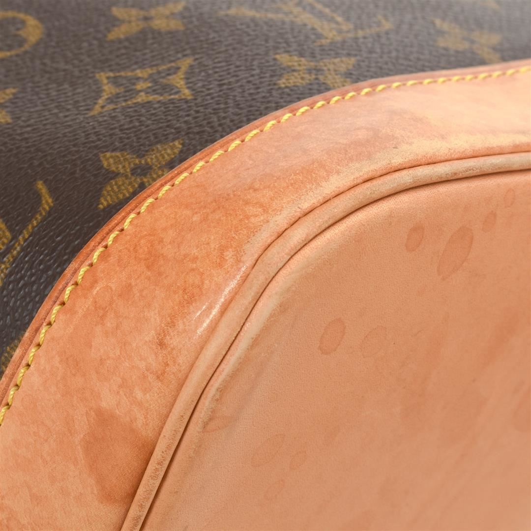 Brown and tan Monogram coated canvas Louis Vuitton Alma PM with gold-tone hardware, tan vachetta leather trim, dual rolled top handles, brown canvas lining, single pocket at interior wall and zip closure at top. 12.5"x5.5"x9"xBag Drop:3"/31.75cmx13.97c