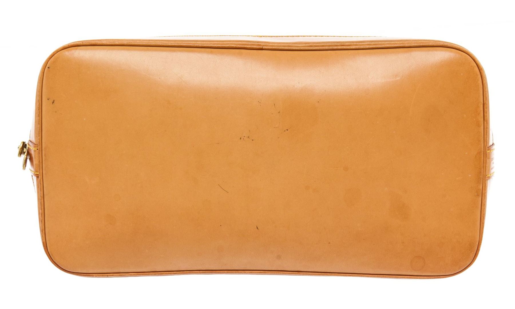 Louis Vuitton Brown Monogram Canvas Leather Alma Satchel Bag. All available information is listed in the description and shown in the photos. Louis Vuitton Brown Monogram Canvas Leather Alma Satchel Bag with brown coated canvas, monogram pattern, brass hardware, leather trim, rolled handles, leather trim embellishment, canvas lining & single interior pocket, zip closure at top. Height: 9" Width: 12.75" Depth: 6.25", Handle Drop: 3" / 22.86 x 32.38 x 15.87 cm