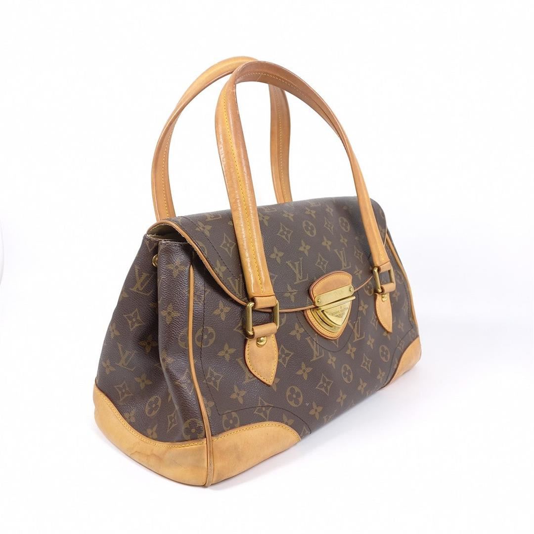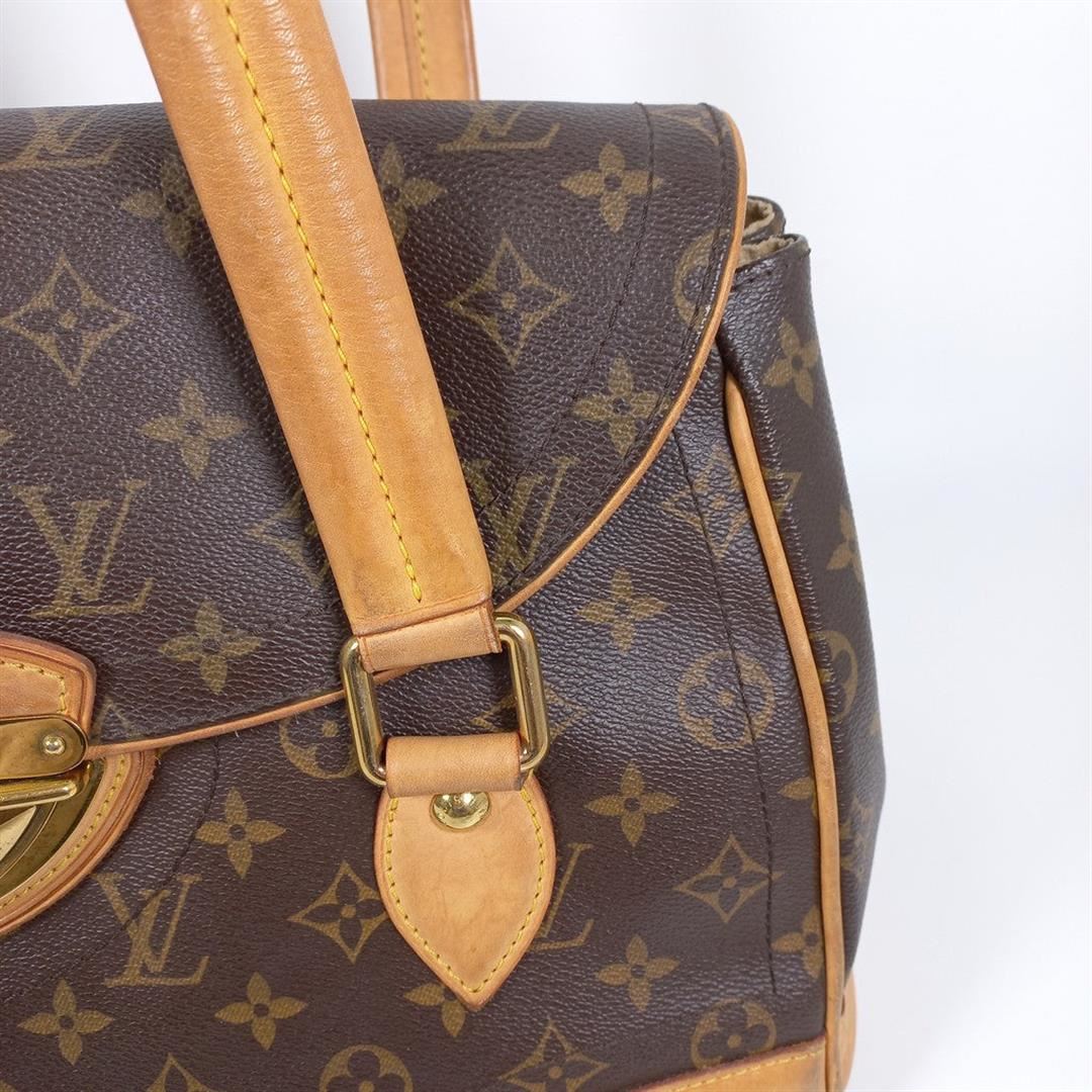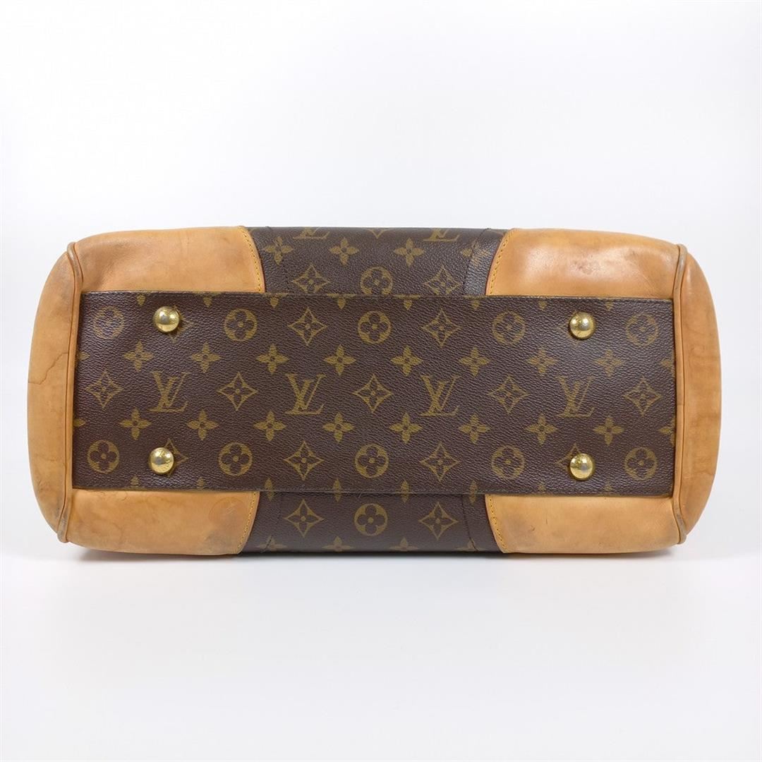 Louis Vuitton Brown Monogram Canvas Leather Beverly GM Shoulder Bag. All available information is listed in the description and shown in the photos. Brown and tan monogram coated canvas Louis Vuitton Beverly GM with gold-tone hardware, tan vachetta leather accents, dual flat shoulder straps, exterior pocket at back, beige Alcantara lining, dual pockets at interior walls; one with snap closure and push-lock closure at front flap. 14"x7"x8"xBag Drop:7.25"/10.1cmx17.7cmx20.3cmxBag Drop:18.4cm