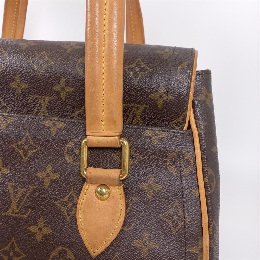 Louis Vuitton Brown Monogram Canvas Leather Beverly GM Shoulder Bag. All available information is listed in the description and shown in the photos. Brown and tan monogram coated canvas Louis Vuitton Beverly GM with gold-tone hardware, tan vachetta leather accents, dual flat shoulder straps, exterior pocket at back, beige Alcantara lining, dual pockets at interior walls; one with snap closure and push-lock closure at front flap. 14"x7"x8"xBag Drop:7.25"/10.1cmx17.7cmx20.3cmxBag Drop:18.4cm